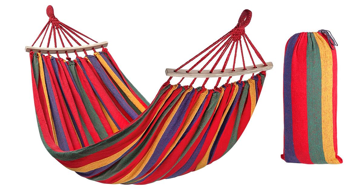 Lukahome.pl » Meble ogrodowe / Huśtawki i hamaki / Jednoosobowy hamak z drążkiem 40cm 400257 Czerwony