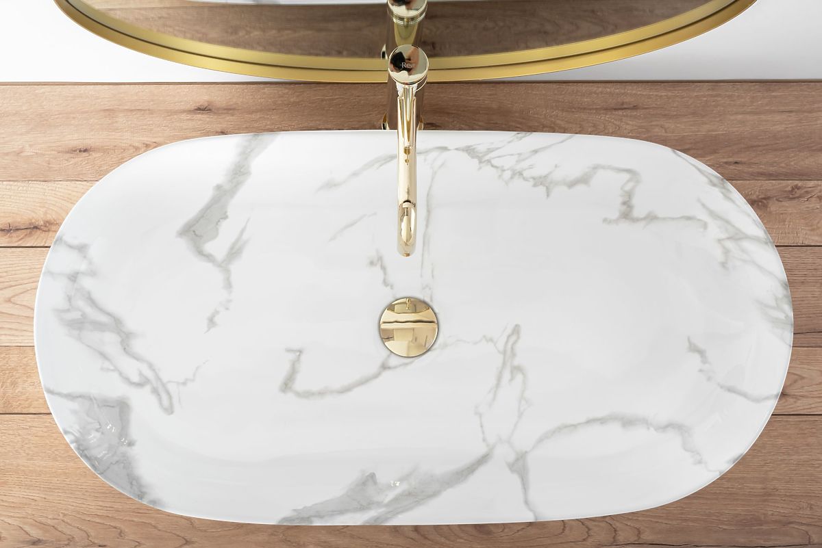 Przedstawiamy nowoczesną, unikalną umywalkę z kamiennym wzorem i nietypowym kształtem. Umywalka Cleo wniesie elegancję do Twojej łazienki, może stać się wyjątkowym elementem lub subtelnym dodatkiem. Jeśli zdecydujesz się na blask tego szlachetnego koloru, efekt końcowy z pewnością zyska lekkość i oryginalność.