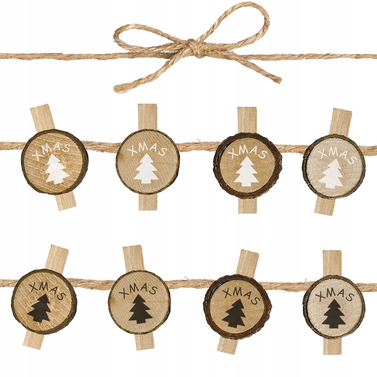 Zestaw ośmiu drewnianych klamerek z motywem choinki i napisem XMAS to drobny detal, który potrafi całkowicie odmienić charakter świątecznych dekoracji. Naturalne drewno w połączeniu z rustykalnym wykonaniem tworzy ozdobę pełną ciepła i przytulności, która doskonale wpisuje się w atmosferę Świąt Bożego Narodzenia. Klamerki mają długość 5 cm i zostały wykonane z dbałością o każdy detal, dzięki czemu można je wielokrotnie używać w kolejnych sezonach.