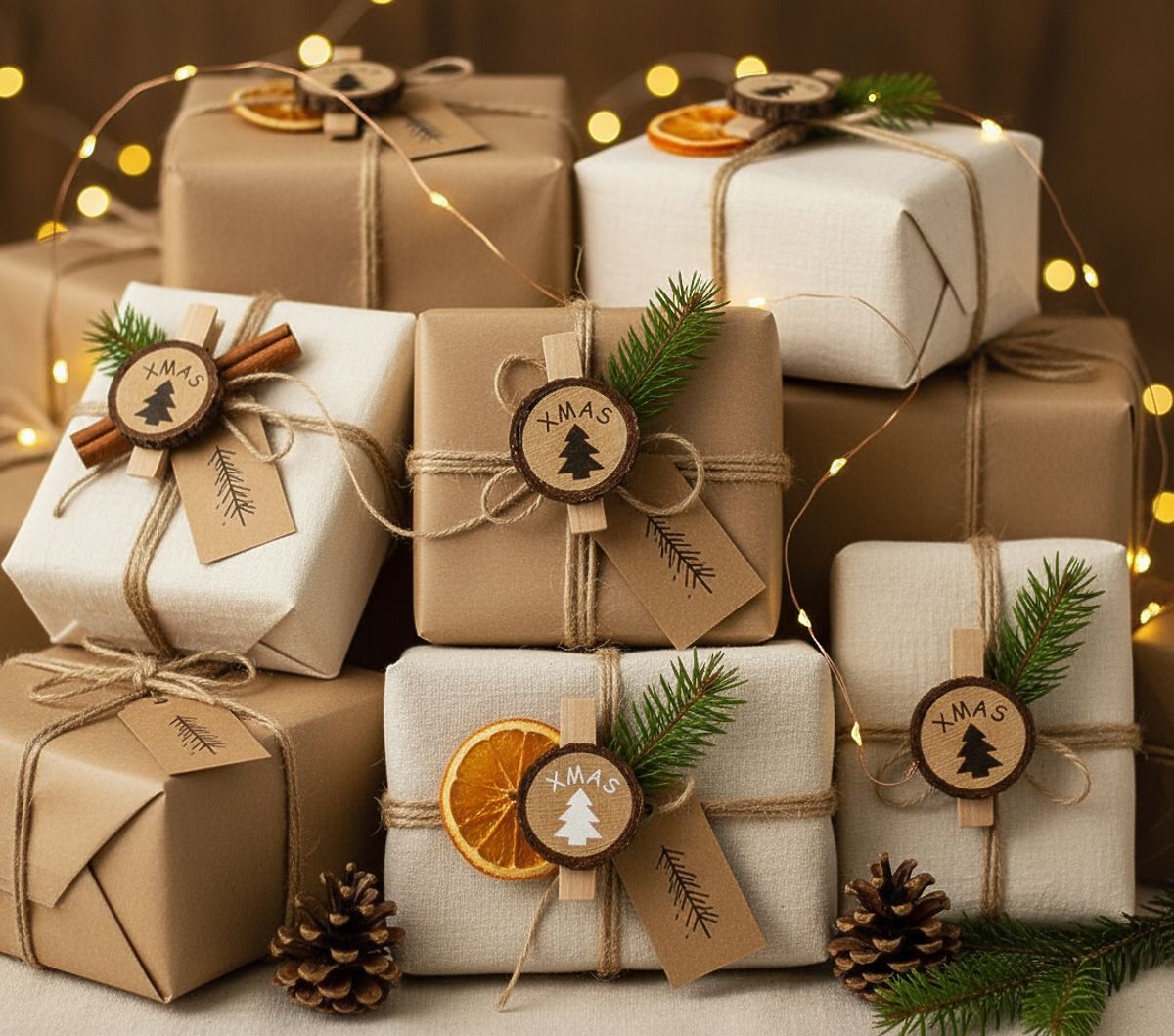 Ich zastosowanie jest bardzo szerokie – sprawdzą się zarówno przy pakowaniu prezentów, gdzie pięknie łączą zawieszki i wstążki, jak i w kalendarzu adwentowym do przypinania małych paczuszek lub numerów dni. Można je również wykorzystać jako drobną dekorację stołu, na przykład do serwetek lub wizytówek gości, a także wkomponować w choinkę, wieńce czy girlandy. Dzięki temu jeden produkt pozwala stworzyć wiele unikalnych aranżacji, które wprowadzą do domu magiczną atmosferę.