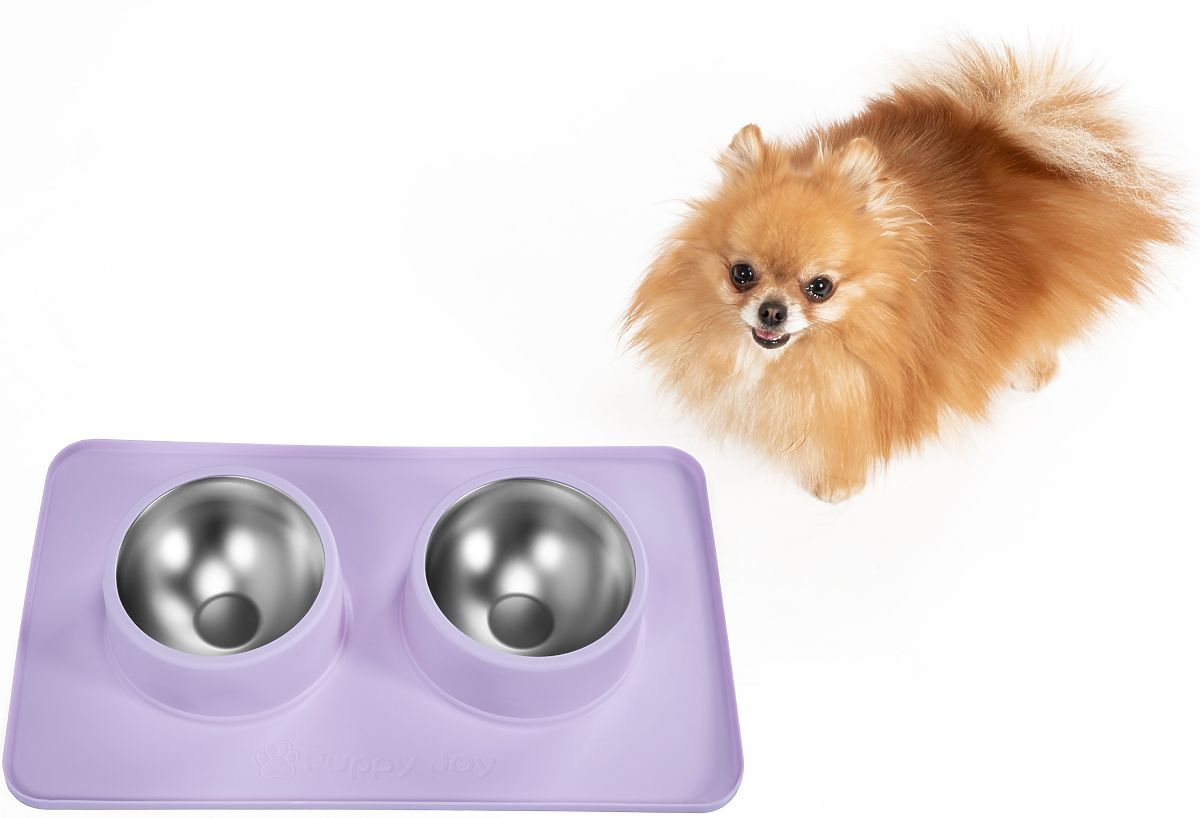 Lukahome.pl » Dla zwierząt domowych / Opieka nad zwierzętami / Metalowe miski dla psa lub kota z antypoślizgową podkładką fioletowa PJ-088