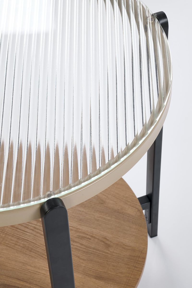 Stolik z fornirowanej MDF i szkła w kolorze naturalnym i czarnym. .. więcej