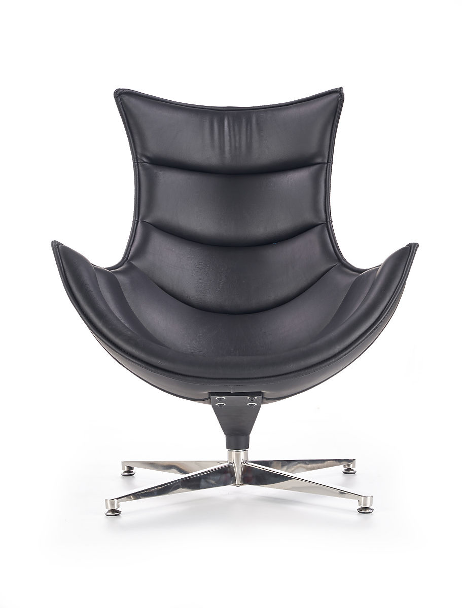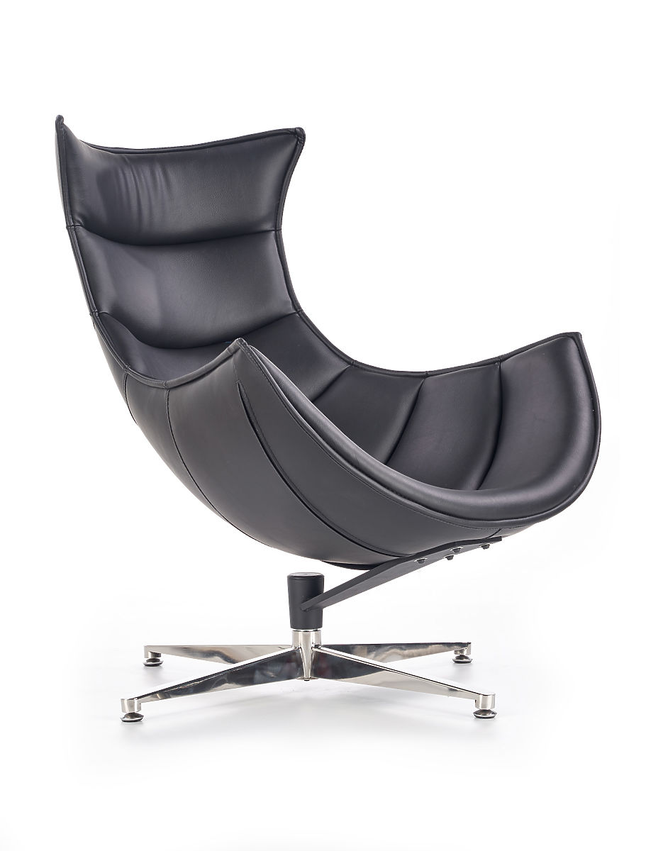 Czarny fotel relaksacyjny z ekologicznej skóry kompozytowej. .. więcej