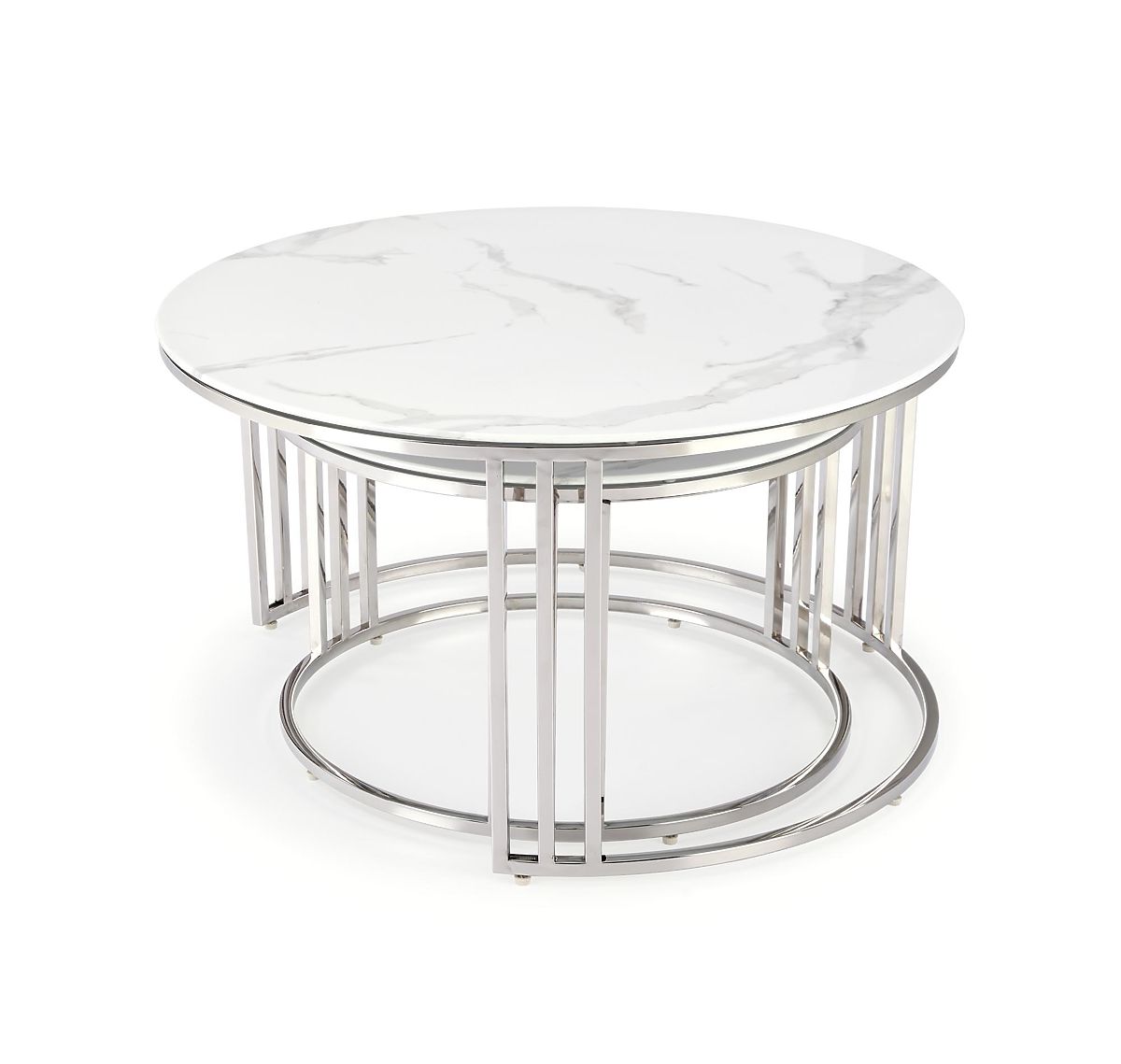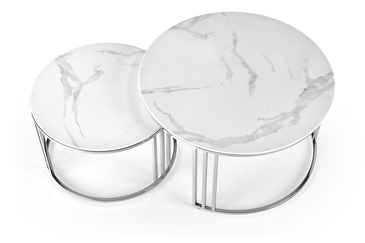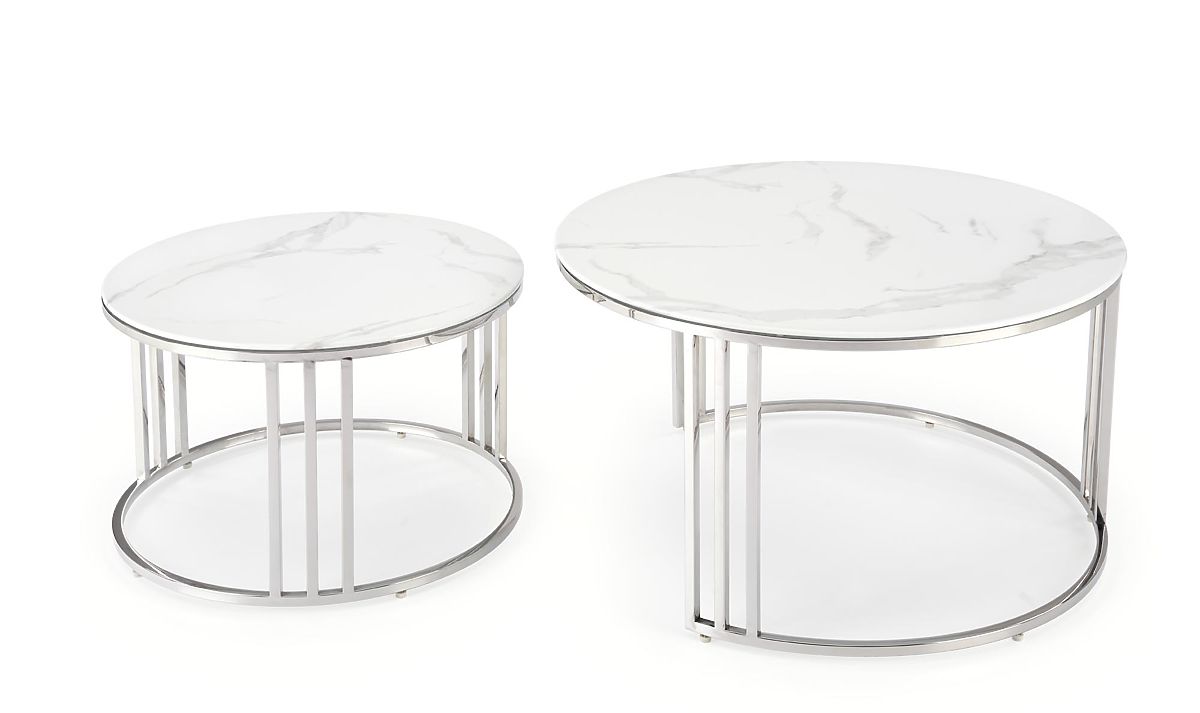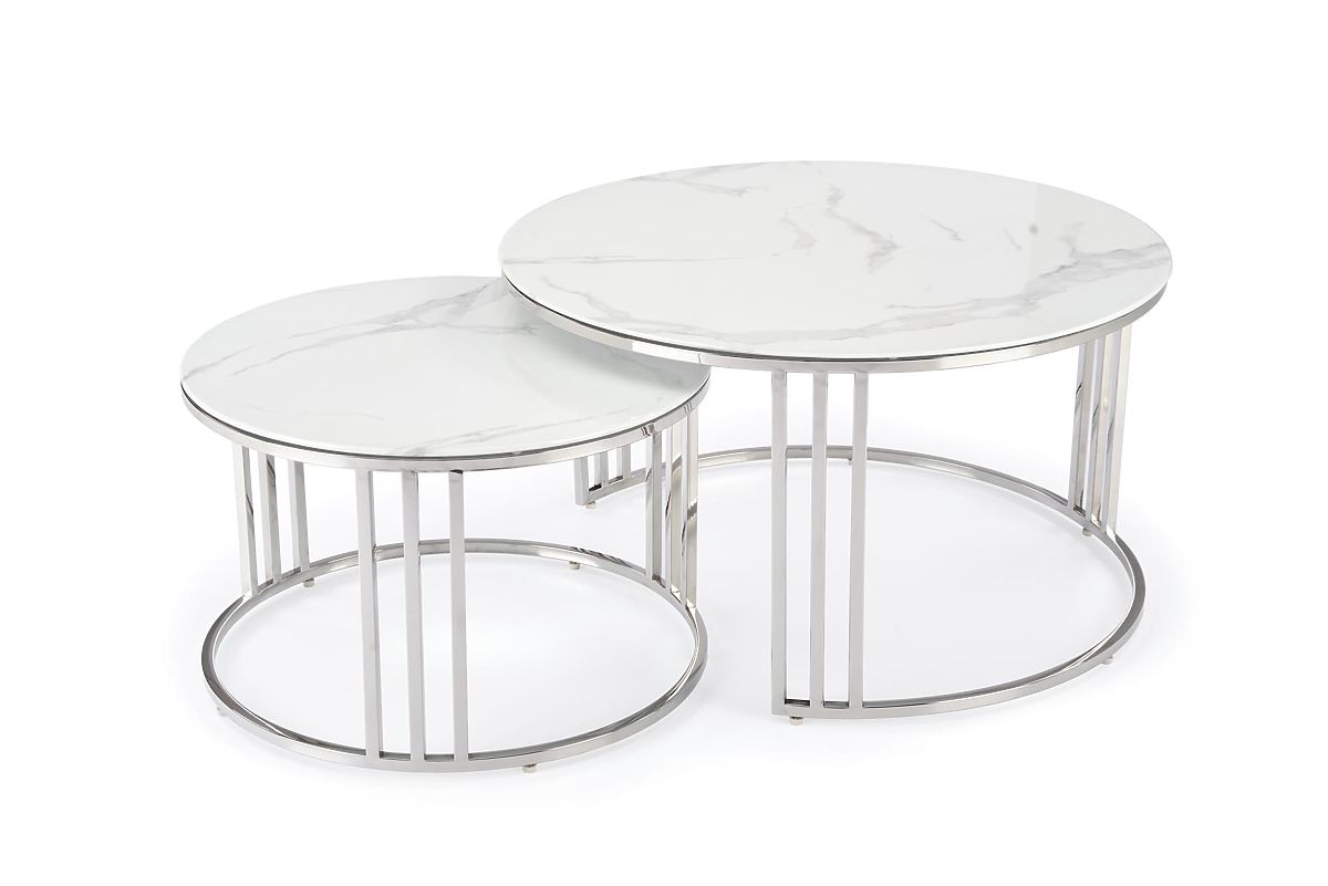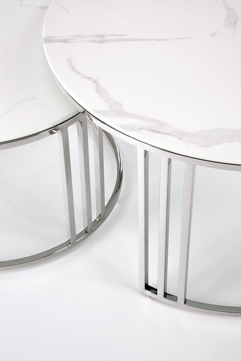 Lukahome.pl » Stoły i stoliki kawowe / Stoliki kawowe / MERCURY 2 zestaw 2 ławek, rama - srebrna, szkło - biały marmur (1p=1szt)