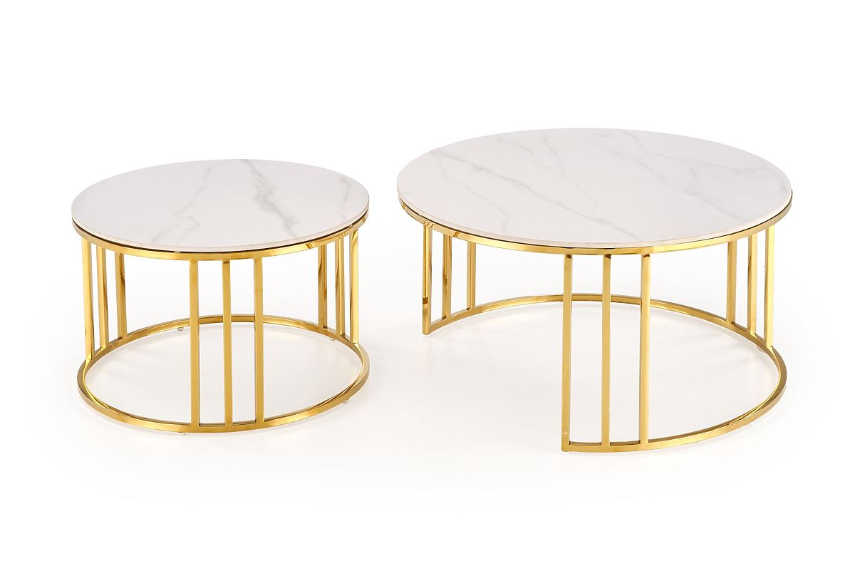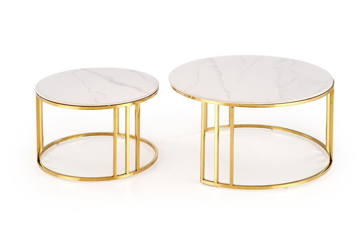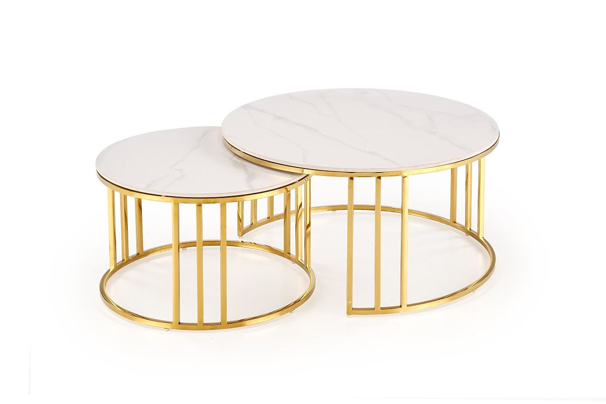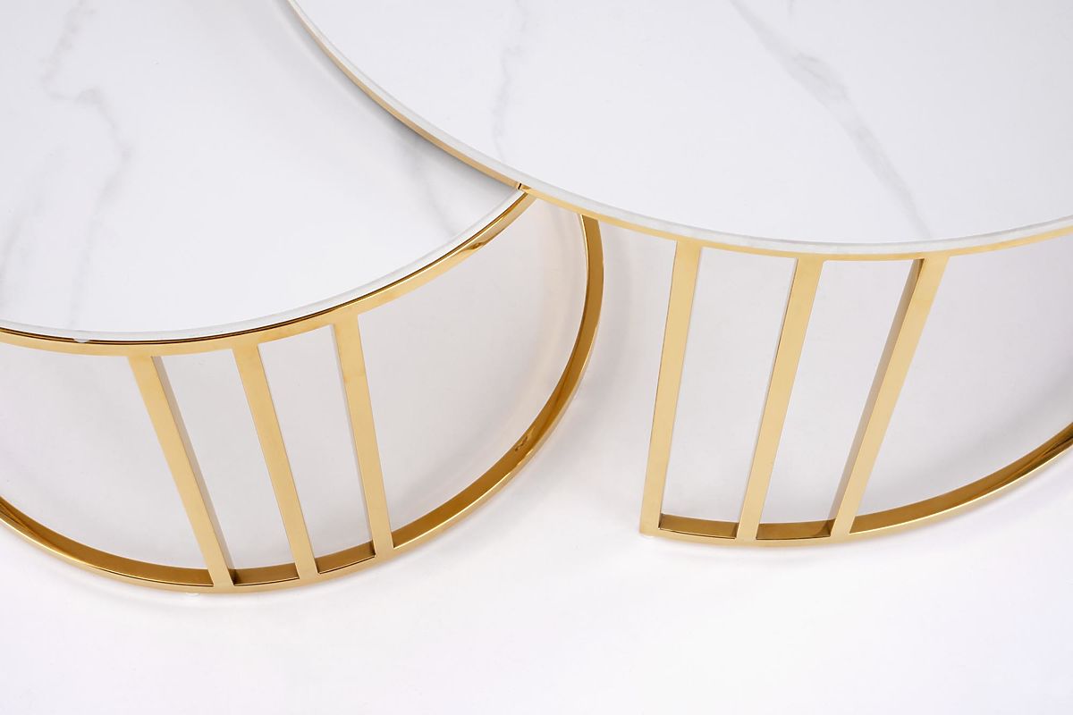 Lukahome.pl » Stoły i stoliki kawowe / Stoliki kawowe / MERCURY 3 zestaw 2 ław, zestaw 2 ław, kolor: biały marmur / złoty (2p=1szt)