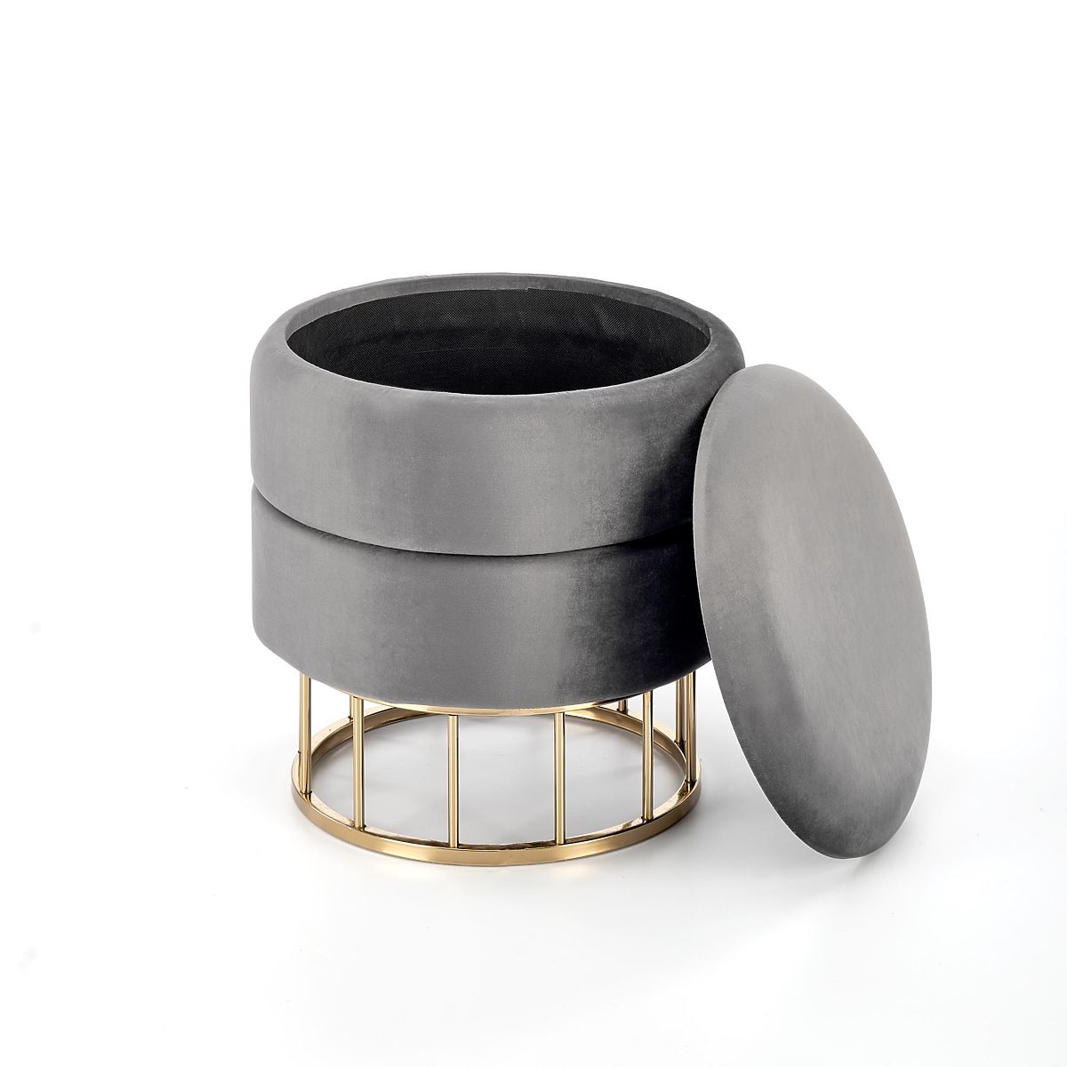 Pufa MINTY z tkaniny i chromowanej stali w kolorze szarym i złotym. .. więcej