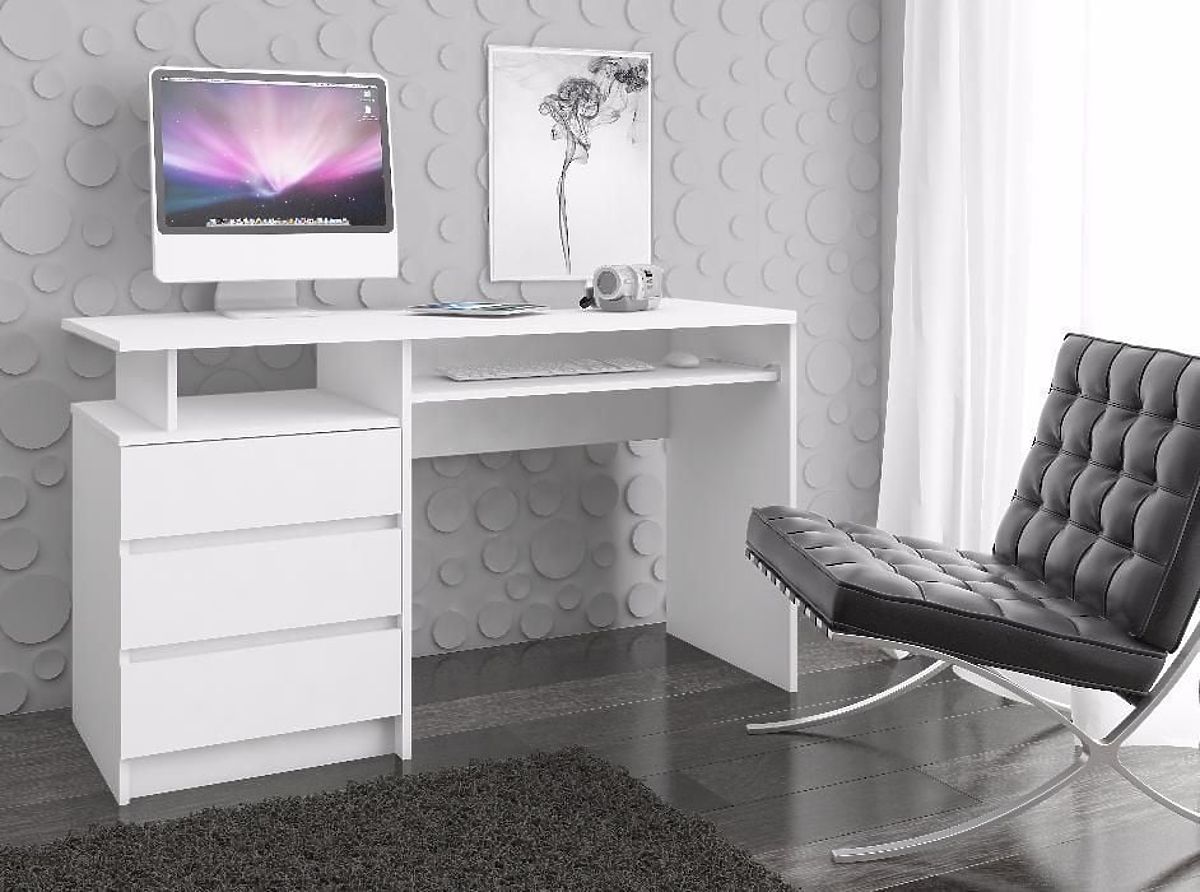 Białe wolnostojące biurko to nowocześnie zaprojektowany mebel, który doskonale wpisuje się w współczesne standardy aranżacyjne. Zachwyca swoją prostotą i elegancją, a to w modnym białym kolorze. Biurko zawiera trzy przestronne szuflady, otwartą półkę, wysuwaną półkę na klawiaturę i szeroki (135 centymetrów) blat. Wolnostojące biurko CLP doskonale nadaje się zarówno do biura, jak i do domowego gabinetu. Ta oferta z pewnością spełni oczekiwania tych, dla których powierzchnia robocza jest najważniejsza. Jej głębokość wynosi aż 60 centymetrów, co umożliwia wygodne korzystanie z komputera i innych potrzeb biurowych. Produkt jest również popularny jako stół do gier, gdzie bardzo ważna jest przestrzeń i komfort użytkownika podczas długiej gry.