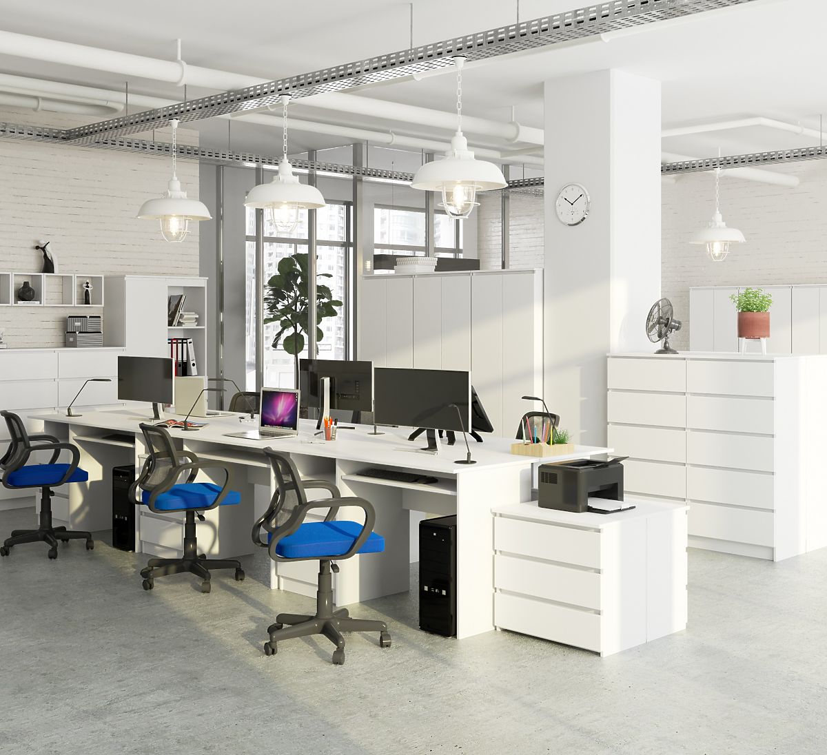Biurko wykonane jest z płyty laminowanej o grubości 16 milimetrów. Do tego mebla można dopasować inne elementy wyposażenia biurowego - regały, szafy, półki, komody. W naszej ofercie mamy również wiele krzeseł biurowych, które z pewnością doskonale pasują do białego wolnostojącego biurka. Polecamy skorzystanie z przygotowanej oferty.
