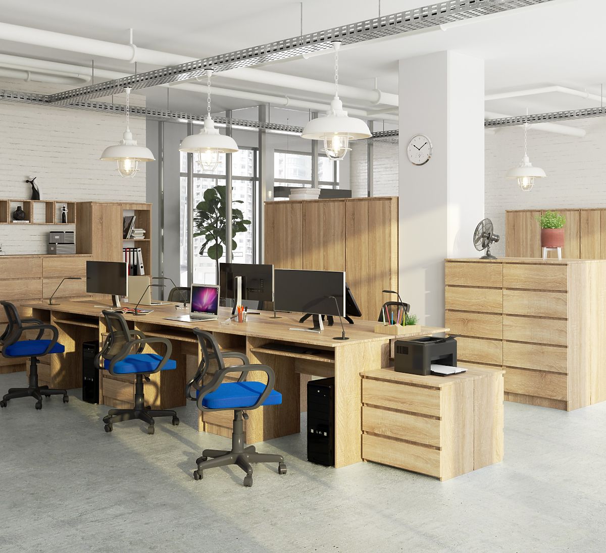 Biurko CLP z trzema szufladami w kolorze dąb sonoma. .. więcej