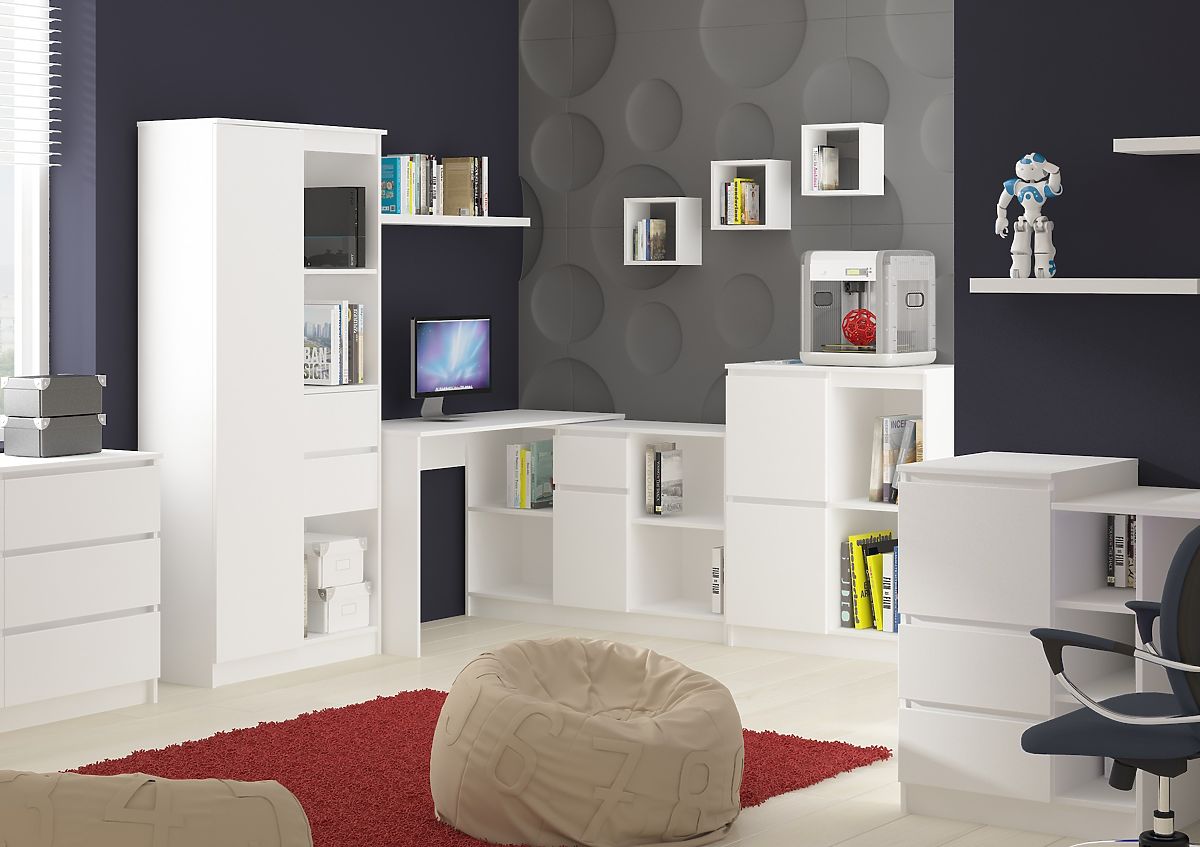 Lukahome.pl » Stoły i stoliki kawowe / Biurka / NAROŻNE BIURKO - ZESTAW B-17 KOMODA I BIURKO PK BIAŁY