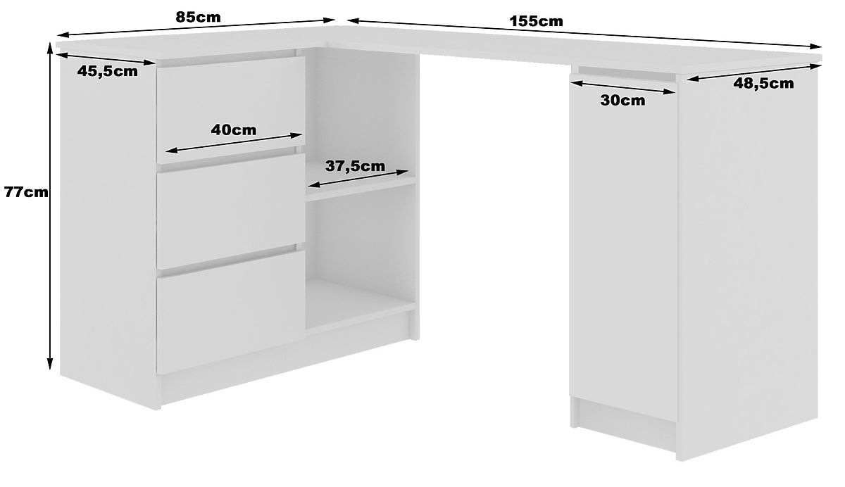 Leworęczne narożne biurko komputerowe z szufladami i szafką - B20