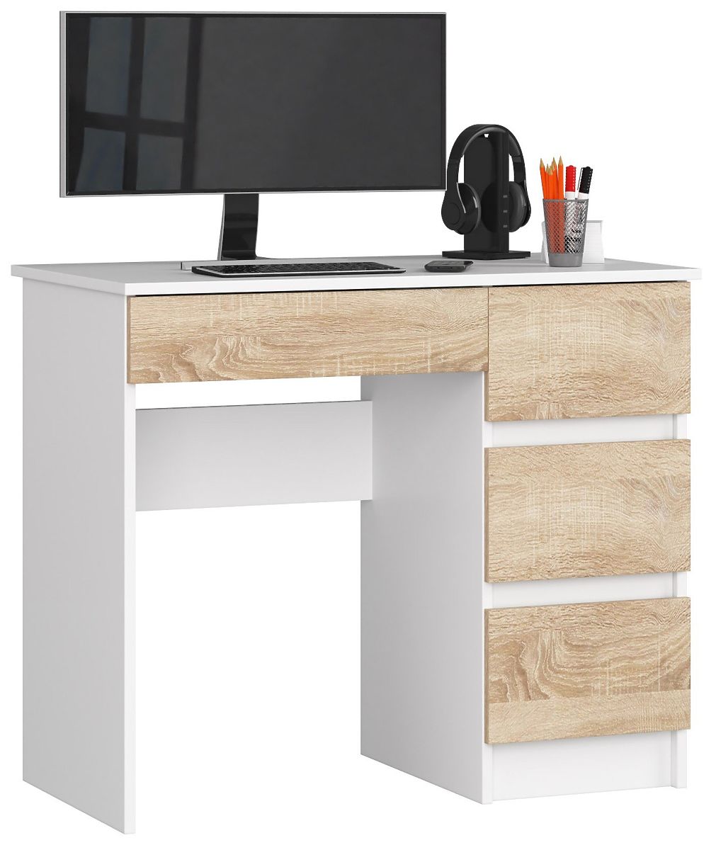 Lukahome.pl » Stoły i stoliki kawowe / Biurka / BIURKO KOMPUTEROWE A-7 90 cm PRAWE PK BIAŁY / SONOMA