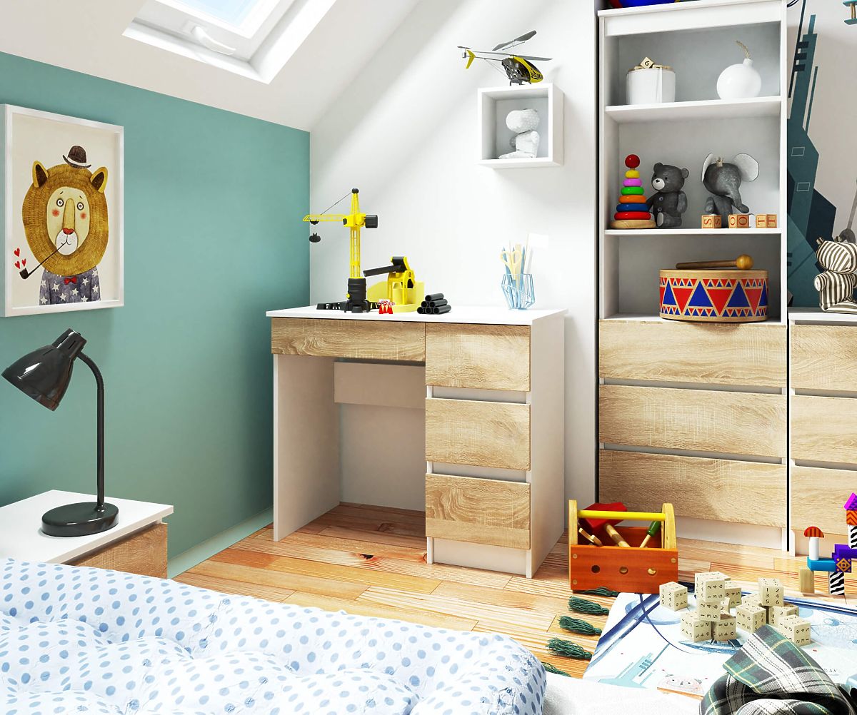 Biurko z czterema szufladami przeznaczone dla młodzieży.