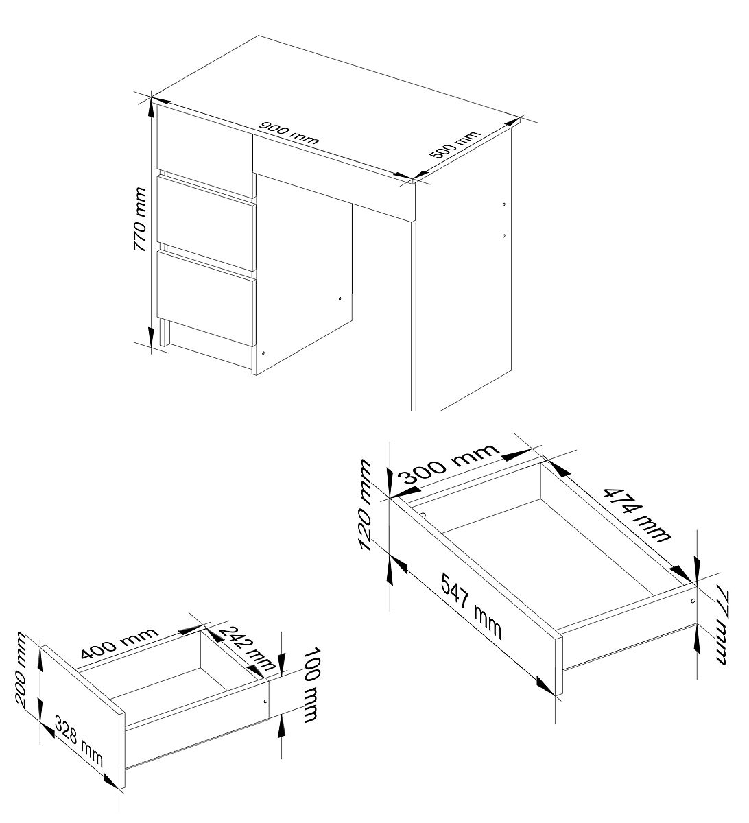 Samo biurko jest dość małe - ma szerokość 90 cm, więc nadaje się nawet do naprawdę małej przestrzeni. Zdecydowanie warto zwrócić uwagę na solidne wykonanie, atrakcyjną cenę i możliwość sprzedaży ratalnej. Serdecznie polecamy zapoznanie się z resztą mebli, które w połączeniu stworzą niesamowite wnętrze i zainspirują Ciebie lub Twoje dziecko do nauki i pracy.