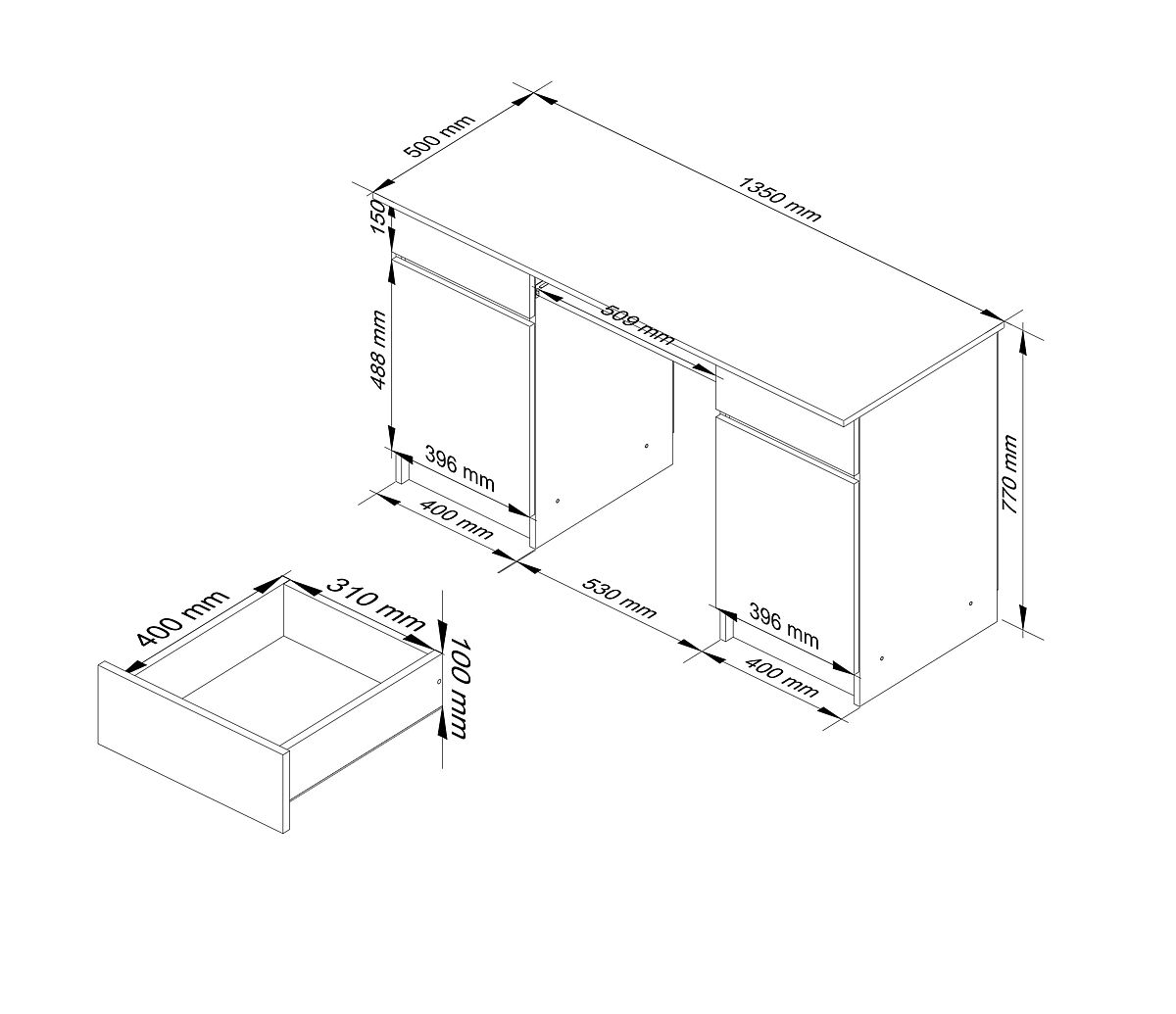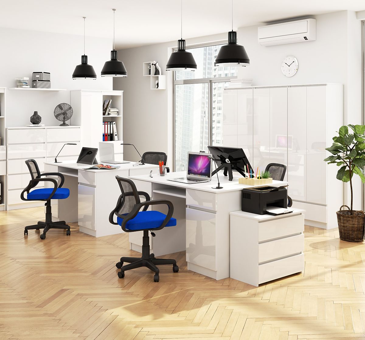 Biurko z płyty laminowanej o grubości 16 mm odpornej na ścieranie.