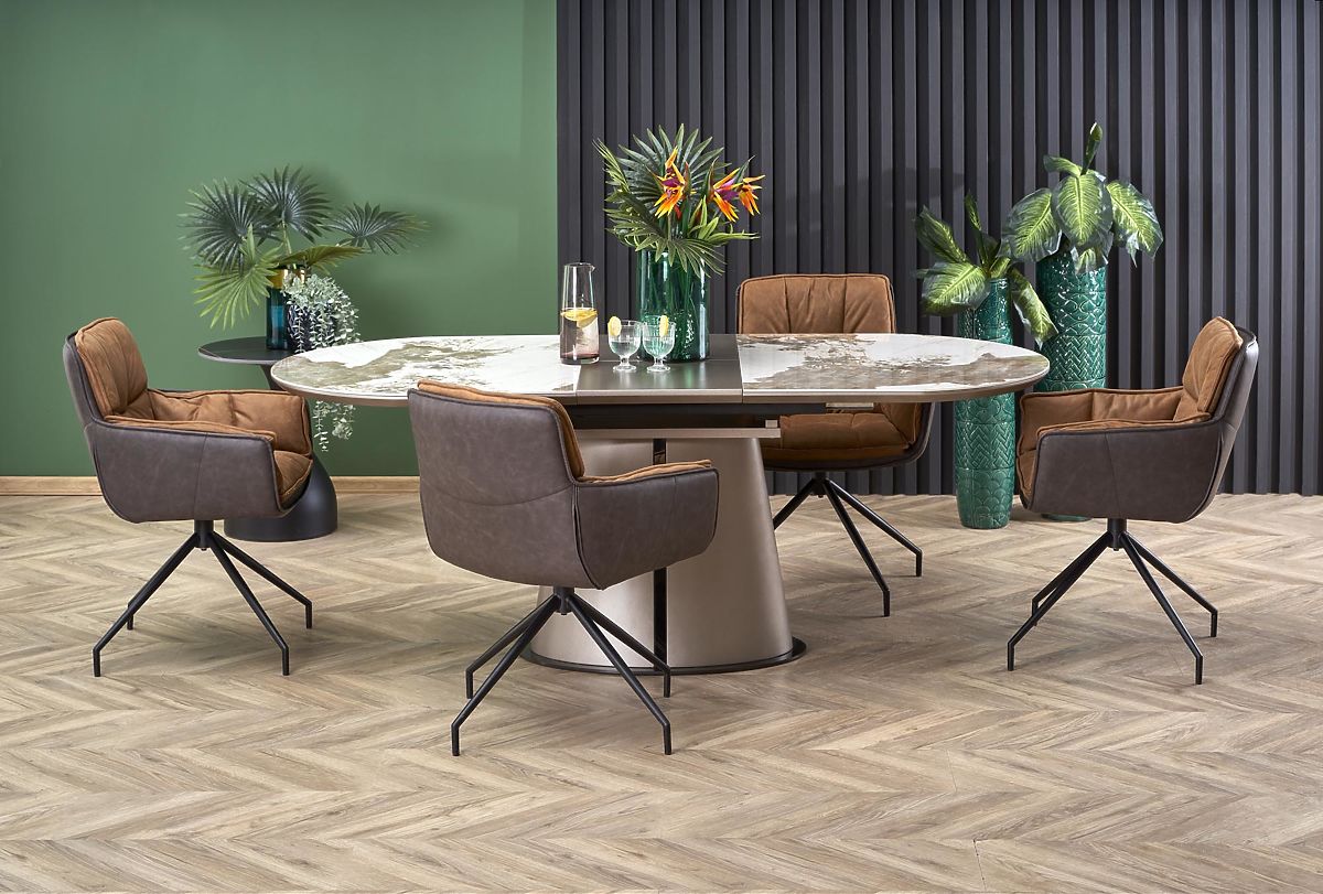 Lukahome.pl » Jadalnia i kuchnia / Stoły jadalne / ROBINSON stół rozkładany, beżowy marmur / cappuccino / czarny