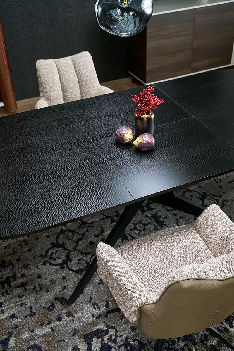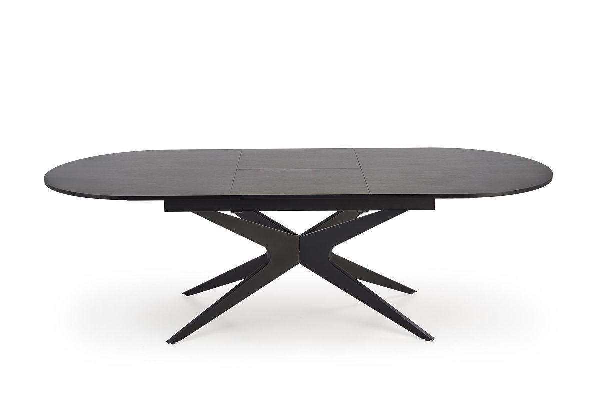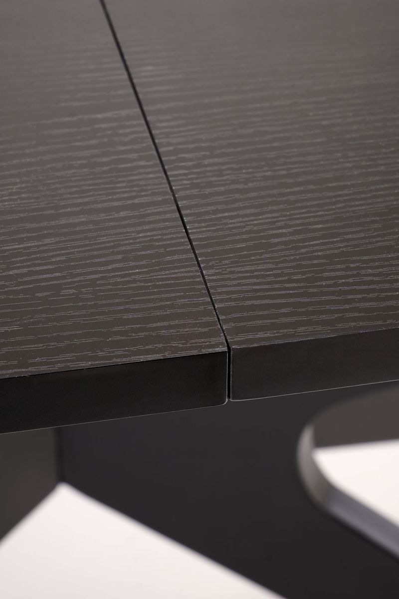 Rozkładany stół z czarnym blatem i nogami. .. więcej