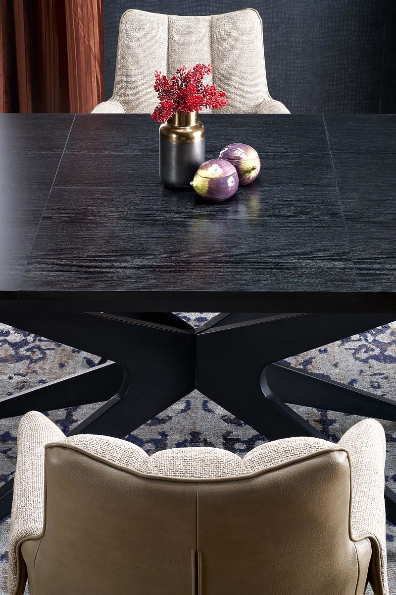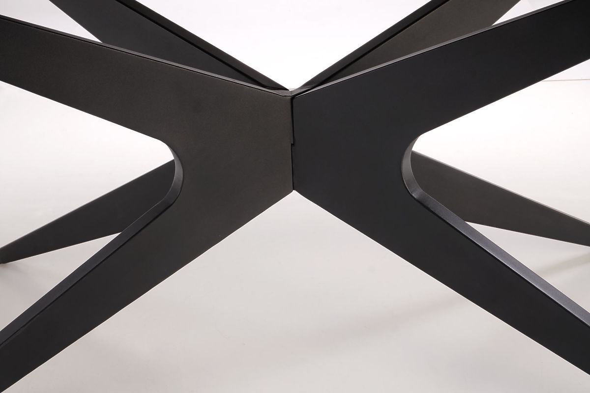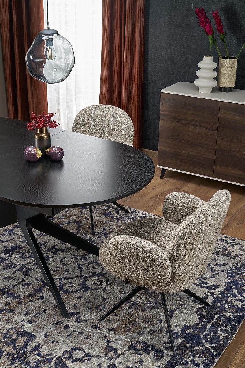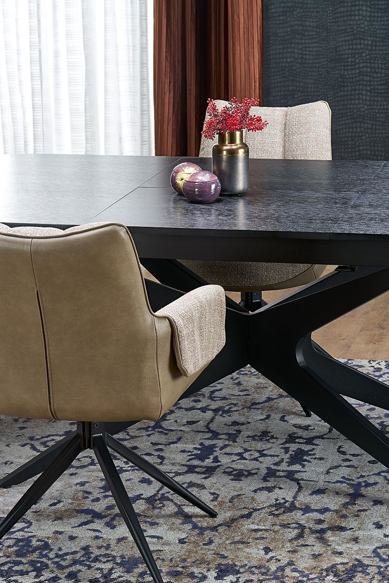 Rozkładany stół z czarnym blatem i nogami. .. więcej