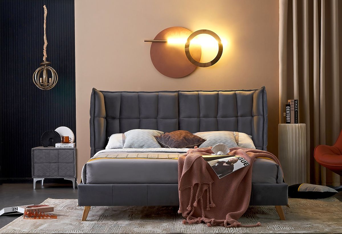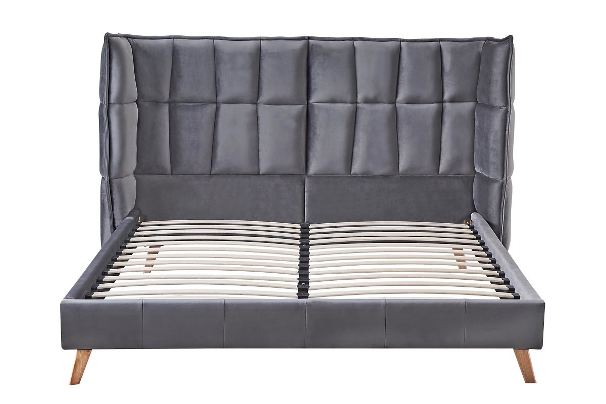 Łóżko SCANDINO 160 w kolorze szarym wykonane z aksamitu i drewna litego. .. więcej
