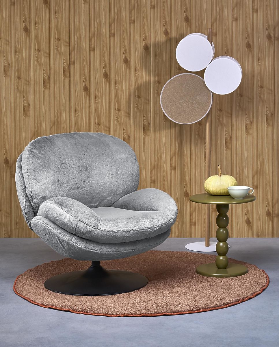 Fotel relaksacyjny SHELL z funkcją obrotową w szarym kolorze. .. więcej