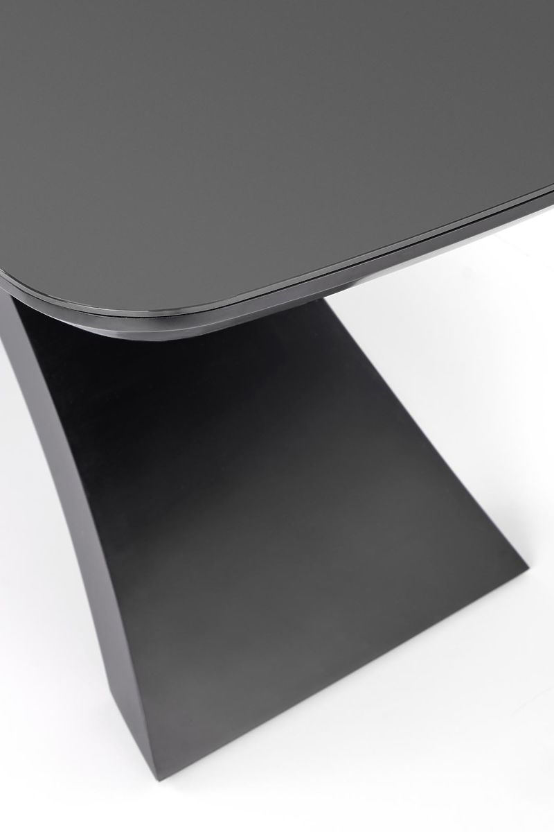 Rozkładany stół jadalniany Silvestro z szarym szklanym blatem i czarnymi nogami. .. więcej
