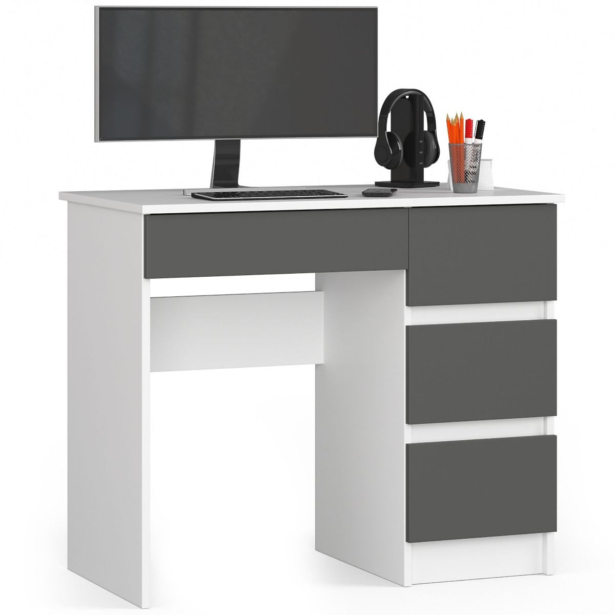 Biurko komputerowe A-7 z czterema szufladami w kolorze biało-grafitowym. .. więcej