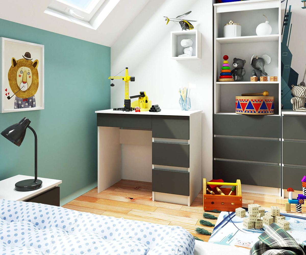 Biurko z czterema szufladami przeznaczone dla młodzieży.