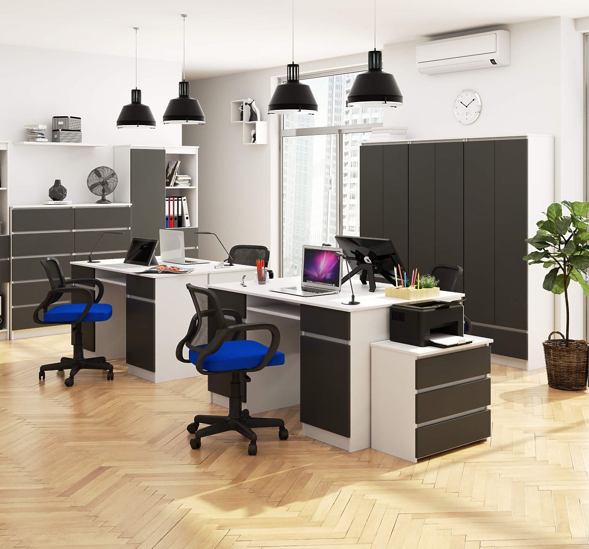 - Biurko wykonane z laminowanej płyty odpornej na ścieranie