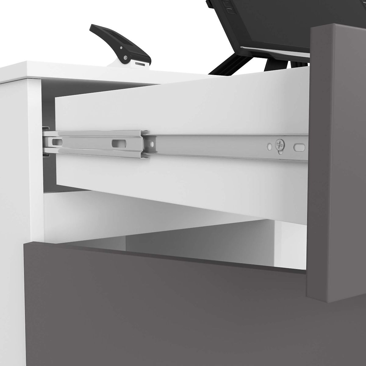 - Szuflady i półka na klawiaturę poruszają się na metalowych prowadnicach kulkowych