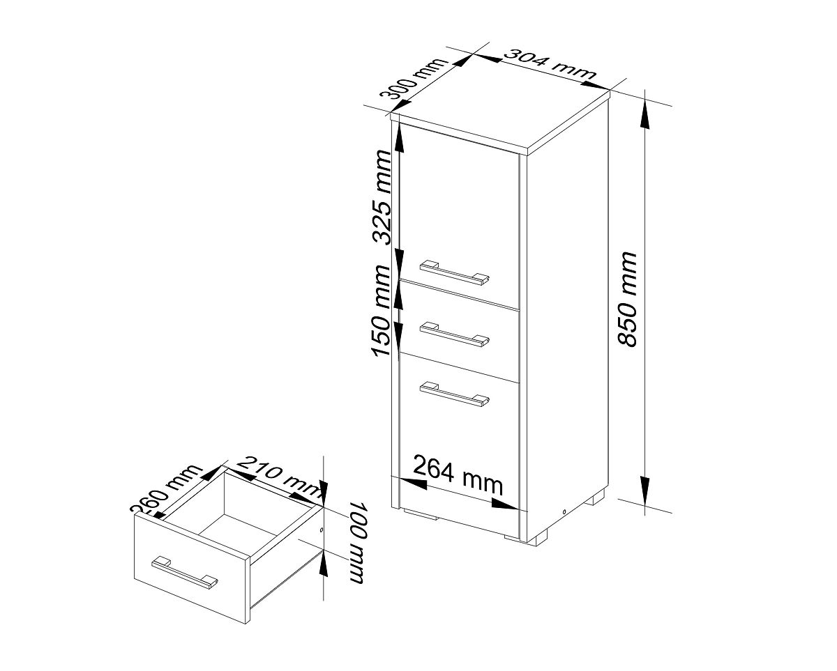 SZAFKA ŁAZIENKOWA FIN SŁUPEK 2D 1SZ Wykonana z laminowanej płyty 16mm odpornej na ścieranie.