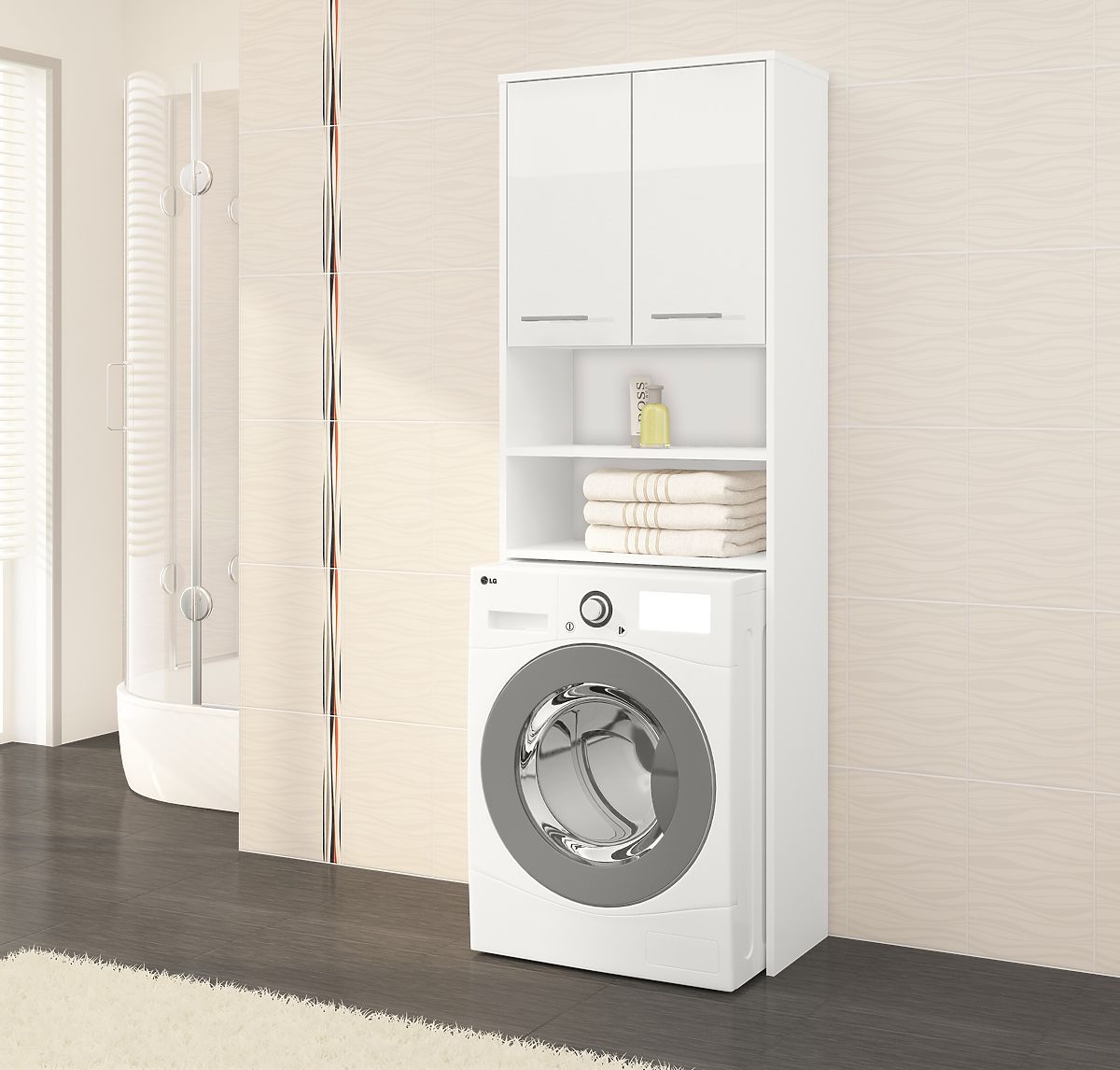 Przestronna szafka nad pralkę z białym połyskiem. .. więcej