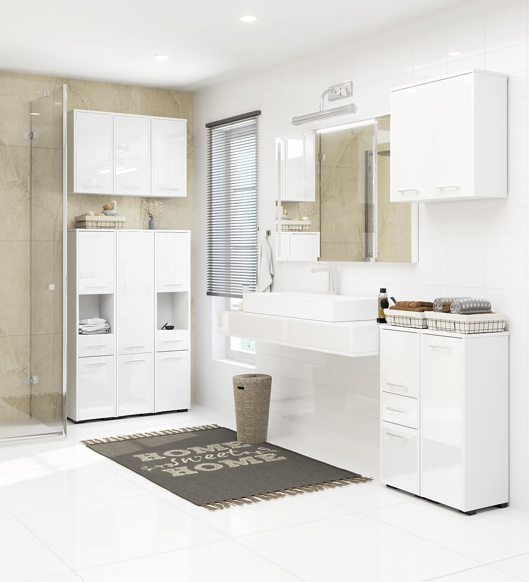 Lukahome.pl » Łazienka i toaleta / Szafki łazienkowe / SZAFKA ŁAZIENKOWA FIN NAD PRALKĘ BIAŁY POŁYSK