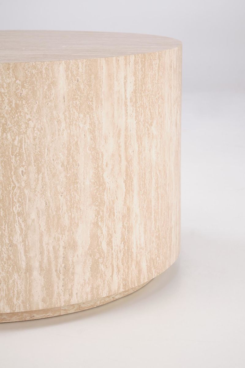 Okrągły stolik kawowy z realistycznym dekorem trawertynu. .. więcej