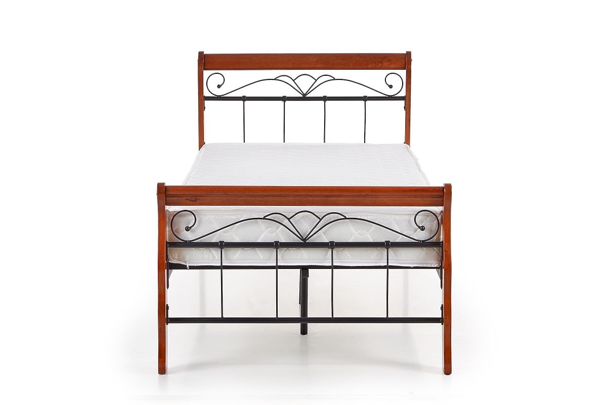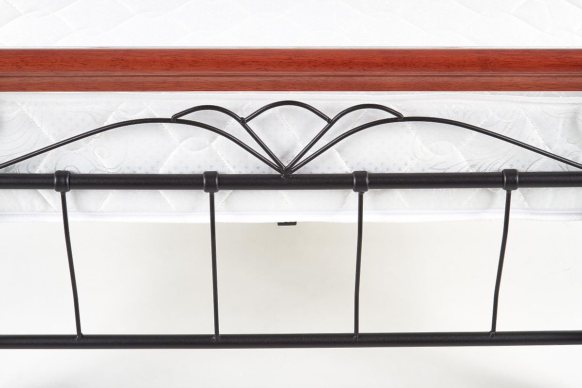 Łóżko Veronica od renomowanego producenta Halmar to eleganckie i wygodne rozwiązanie do stylowej sypialni. Przyciąga uwagę przede wszystkim swoim dekoracyjnie zdobionym wezgłowiem i częścią nożną, które wykonane są z grubego, stylowo skręconego drutu, nadając łóżku romantyczny, a nawet lekko rustykalny charakter. Stabilność i długą żywotność zapewniają cztery masywne drewniane nogi, które jednocześnie tworzą narożne części konstrukcji. Wykończenie w odcieniu antycznej wiśni podkreśla ponadczasowy wygląd i łatwo łączy się z klasycznym i vintage wnętrzem. Łóżko Veronica to idealny wybór dla tych, którzy szukają połączenia estetyki, solidności i komfortu. Doskonale sprawdzi się w sypialniach utrzymanych w romantycznym, tradycyjnym lub wiejskim stylu.