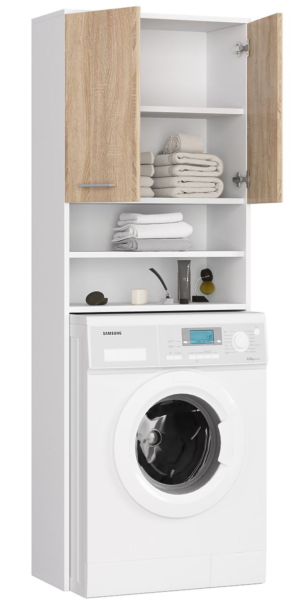Lukahome.pl » Bathroom & Toilet / Łazienka gabinet / REGAŁ ŁAZIENKOWY FIN SŁUPEK 2D PRALKA BIAŁY / SONOMA