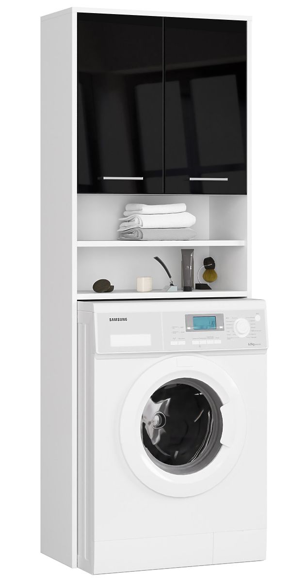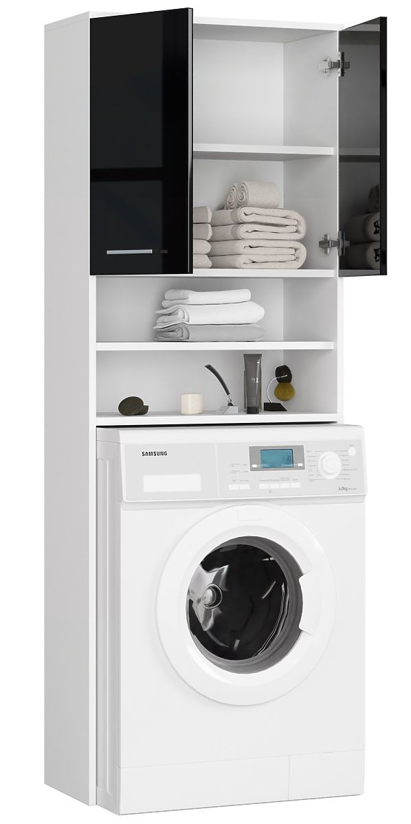 Regał łazienkowy nad pralkę z czarnymi frontami na wysoki połysk. .. więcej