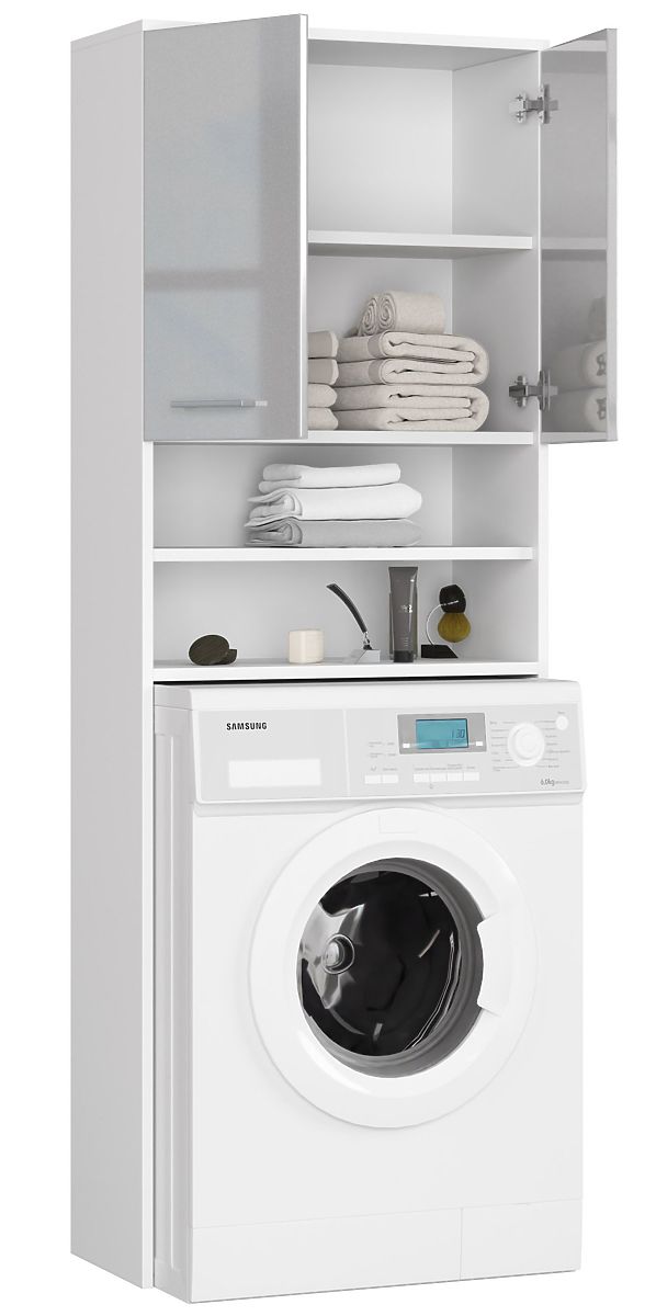 Lukahome.pl » Łazienka i toaleta / Szafki łazienkowe / REGAŁ ŁAZIENKOWY FIN NAD PRALKĘ BIAŁY / METALICZNY POŁYSK