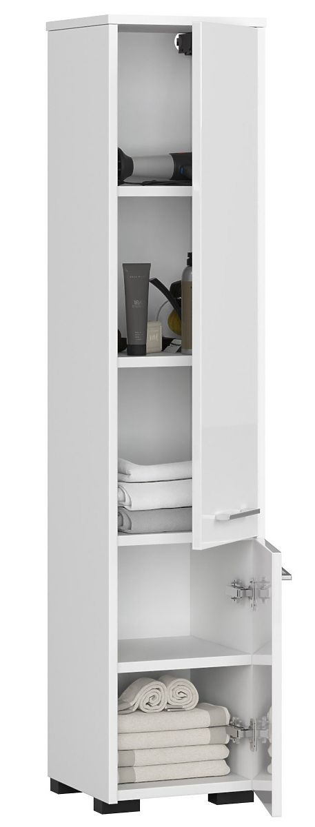Szafka łazienkowa z 2 drzwiami, biała z połyskiem, wysokość 140 cm. .. więcej