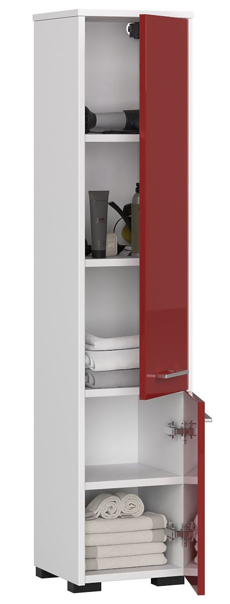 SZAFKA ŁAZIENKOWA SŁUPEK FIN 2 DRZWI BIAŁA / CZERWONY POŁYSK Wykonana z laminowanej płyty 16mm odpornej na ścieranie.