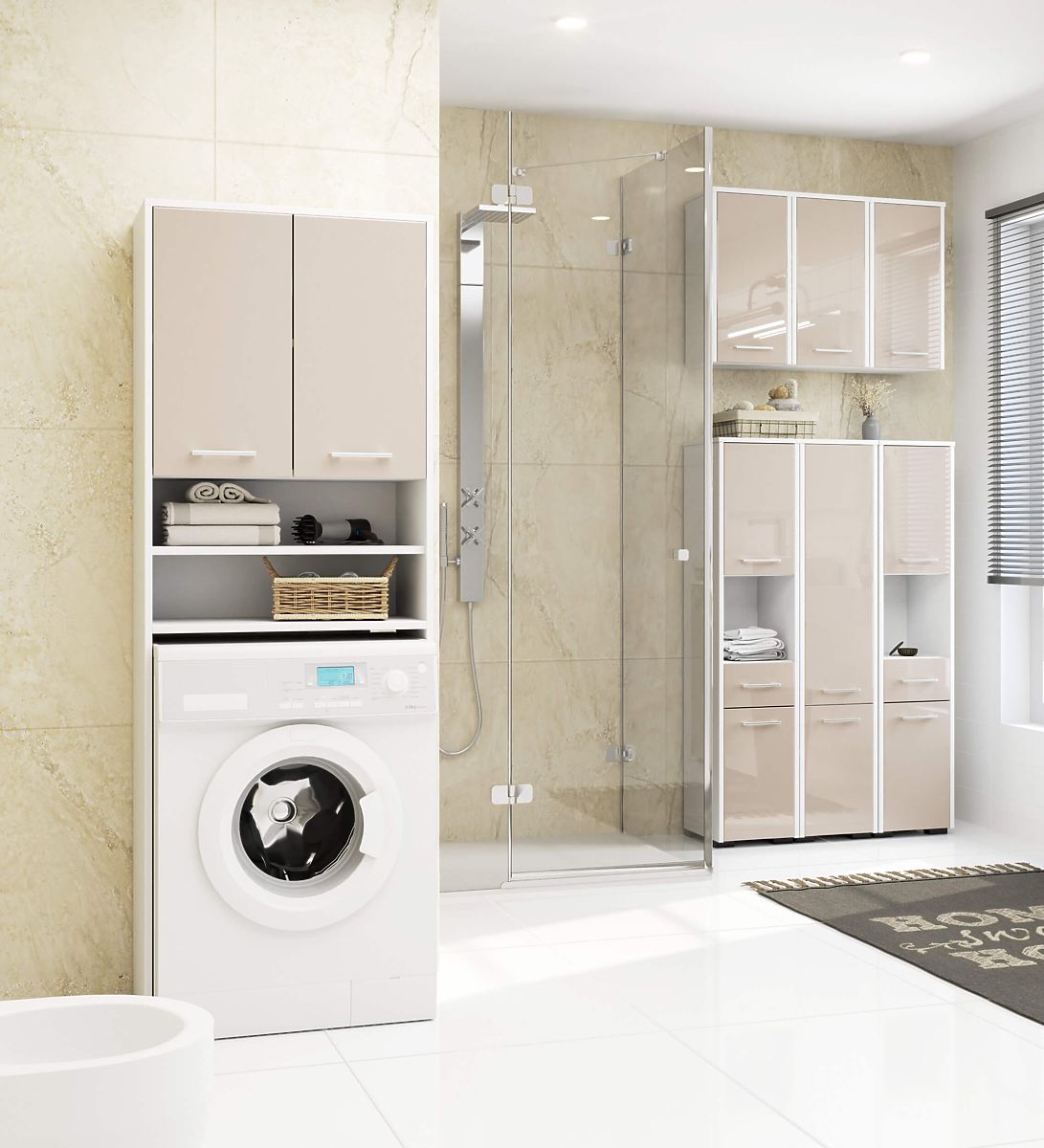 Regał łazienkowy FIN z szufladą i półkami, kolor cappuccino połysk. .. więcej
