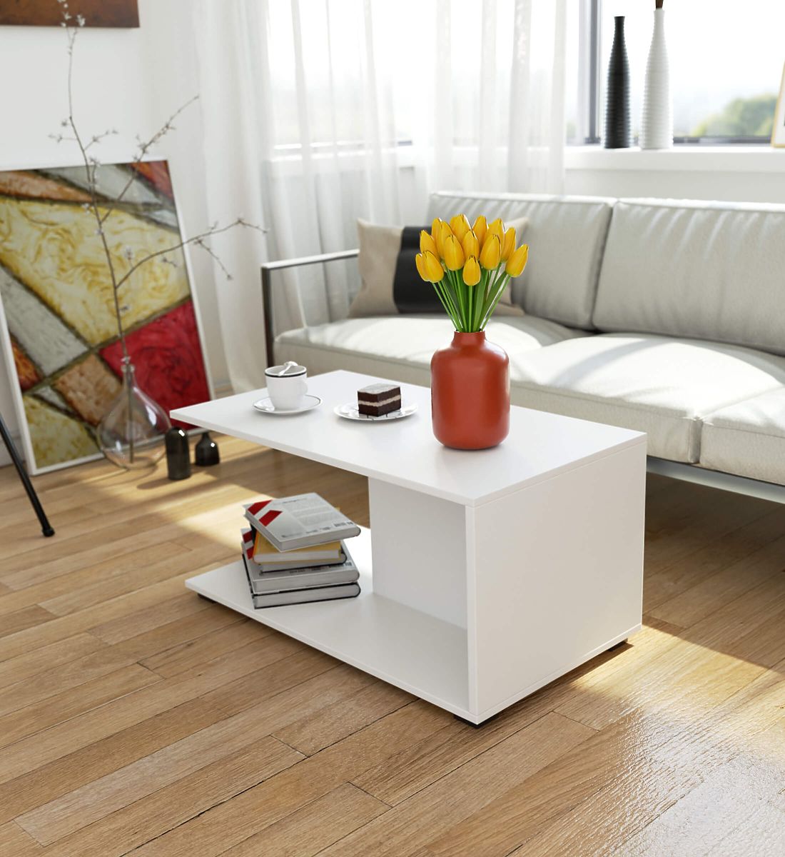 STOLIK KAWOWY MARGO BIAŁY Wykonany z laminowanej płyty o grubości 16 mm odpornej na ścieranie.
