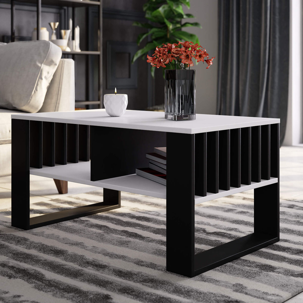 Stolik konferencyjny Rockford biały z czarnymi nogami to połączenie atrakcyjnego i estetycznego wyglądu z funkcjonalnością i uniwersalnością zastosowania. Dzięki kolorystyce stolik doskonale pasuje do nowoczesnych i tradycyjnych wnętrz, jednocześnie wizualnie powiększając i rozjaśniając pomieszczenie. Mały rozmiar mebla zapewnia, że stolik spełni swoje zadanie nawet w niewielkim pokoju w mieszkaniu. Stolik to mebel o wszechstronnym zastosowaniu. Może być używany nie tylko do picia kawy, herbaty czy zimnych napojów, przyjmowania gości czy codziennego odpoczynku. Stolik z funkcjonalnym blatem jest również odpowiedni do pracy z laptopem, podczas gdy szeroka półka umieszczona na dole pozwala na przechowywanie na niej akcesoriów komputerowych i materiałów roboczych. Stolik konferencyjny Rockford biały z czarnymi nogami wykonany jest z laminowanej płyty odpornej na ścieranie i wodę, dzięki czemu blat mebla można z powodzeniem czyścić nawet na mokro. Krawędzie stolika zabezpieczone są trwałymi obrzeżami ABS, co dodatkowo zwiększa odporność mebla na uszkodzenia.