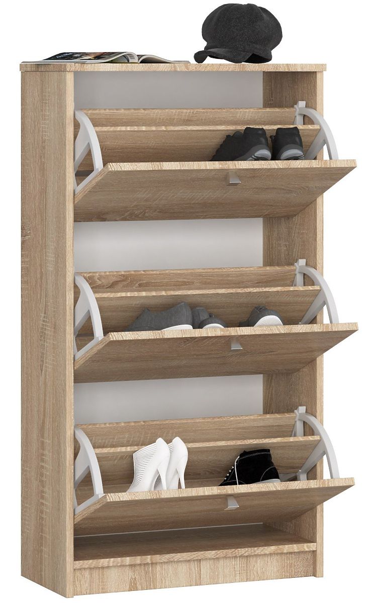 Szafka na buty z uchylnymi drzwiami i trzema dwurzędowymi koszami. .. więcej