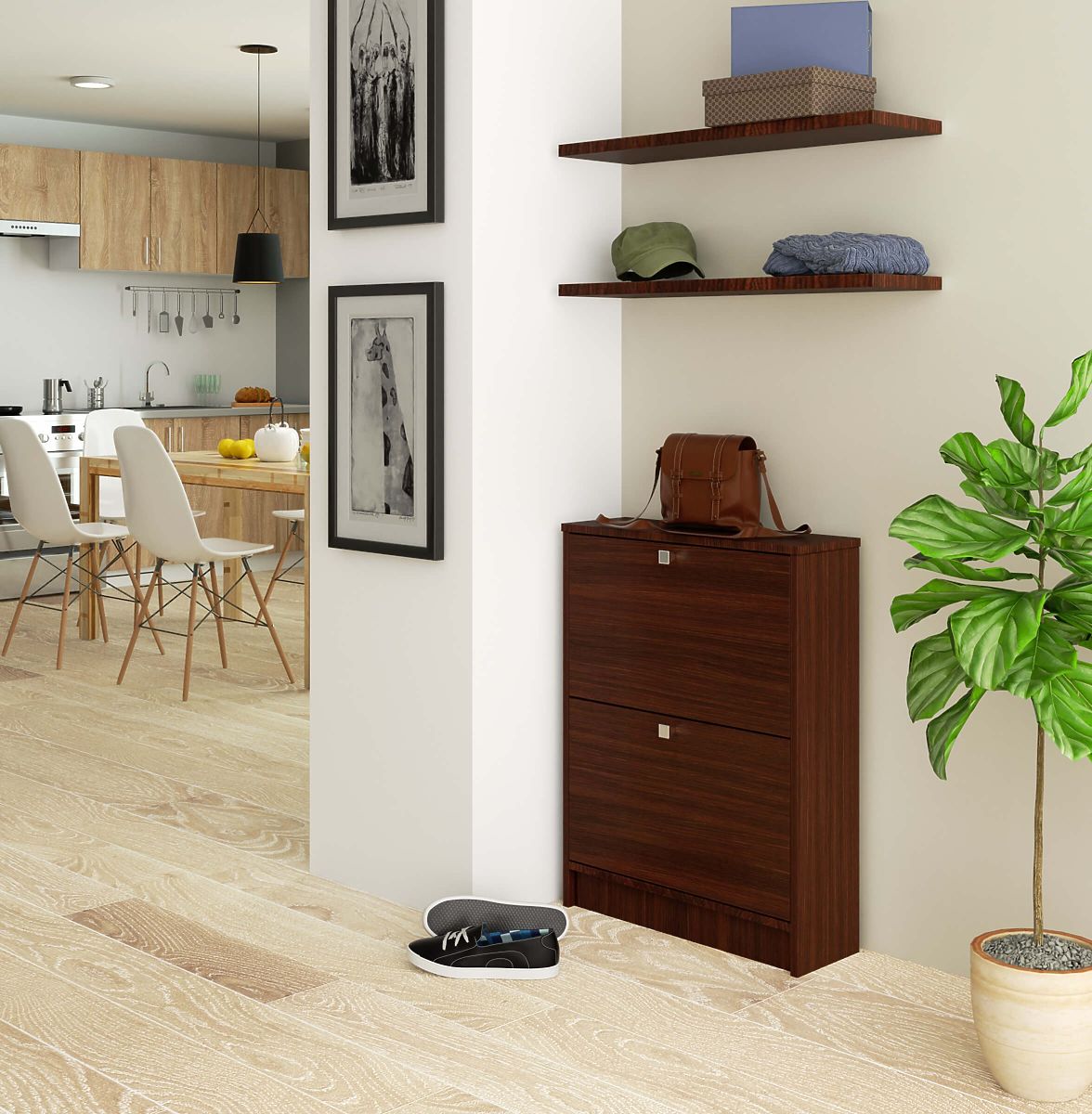 Szafka na buty z uchylnymi drzwiami w kolorze wenge. .. więcej