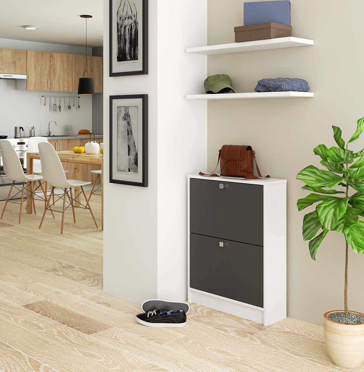 Lukahome.pl » Meble / Półki na buty / Szafka na buty 2 drzwi uchylne 60 cm - biało-grafitowa szarość