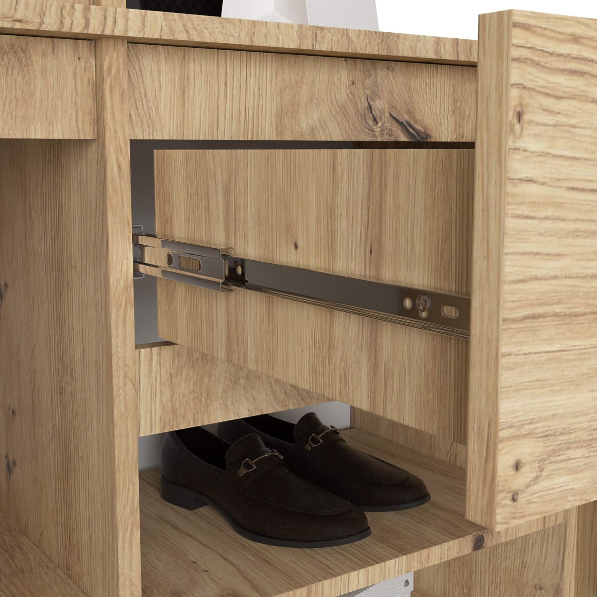 W pomieszczeniach z ograniczoną przestrzenią niezbędne są rozwiązania, które maksymalizują funkcjonalność wnętrza. Szafa do przedpokoju ENTRO to doskonały wybór do wąskiego korytarza lub przedpokoju. Pozwala sprytnie wykorzystać małą przestrzeń, jednocześnie nadając pomieszczeniu nowoczesny styl. Produkt oferuje szereg praktycznych rozwiązań, w tym wystarczającą ilość miejsca na wieszanie kurtek czy płaszczy, półki na buty i akcesoria oraz szufladę na drobiazgi. Wyjątkowo funkcjonalne rozmieszczenie i szeroki wybór kolorystyczny spełnią oczekiwania nawet najbardziej wymagających użytkowników.