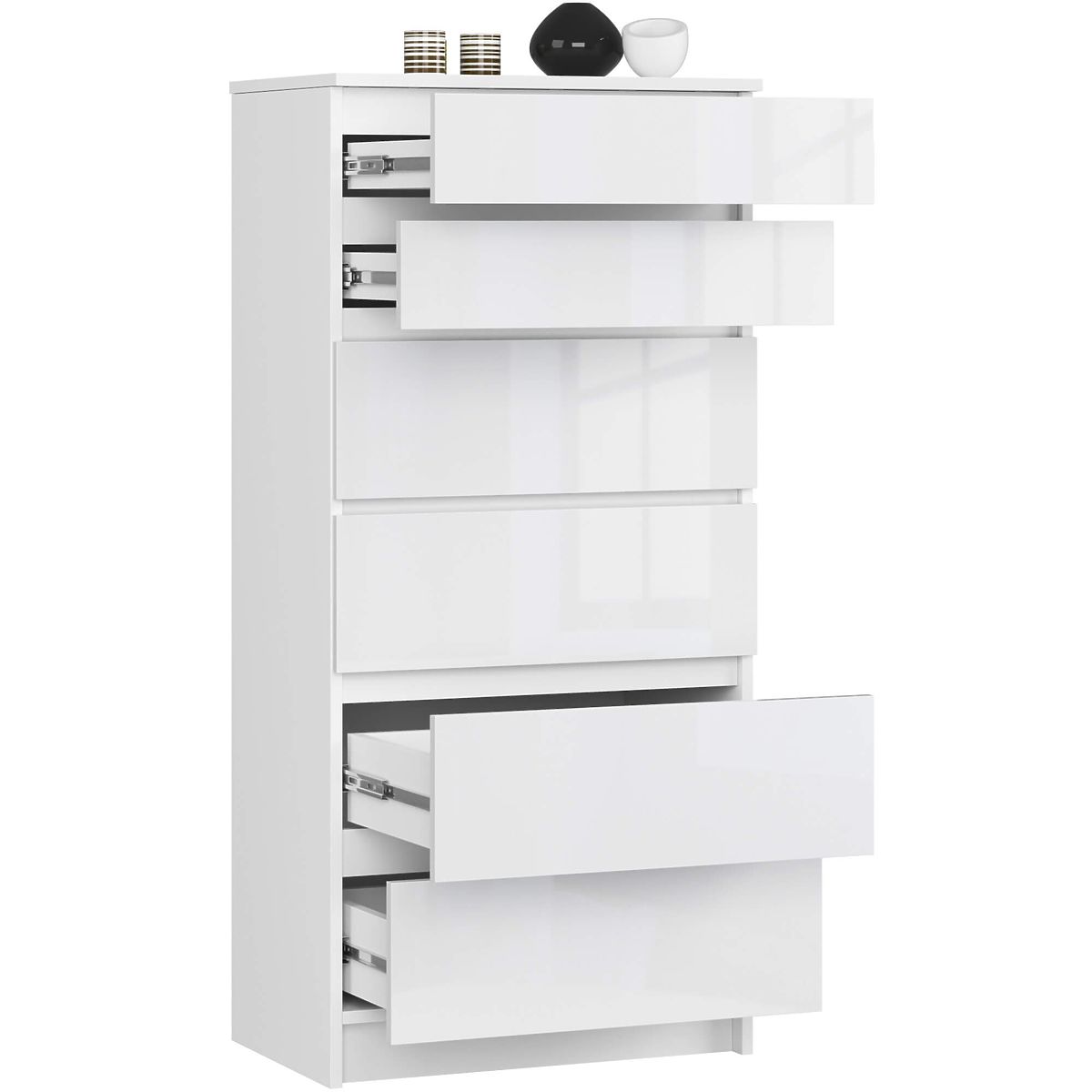 KOMODA K60 6SZ WYSOKI POŁYSK Wykonana z laminowanej płyty 16mm odpornej na ścieranie.