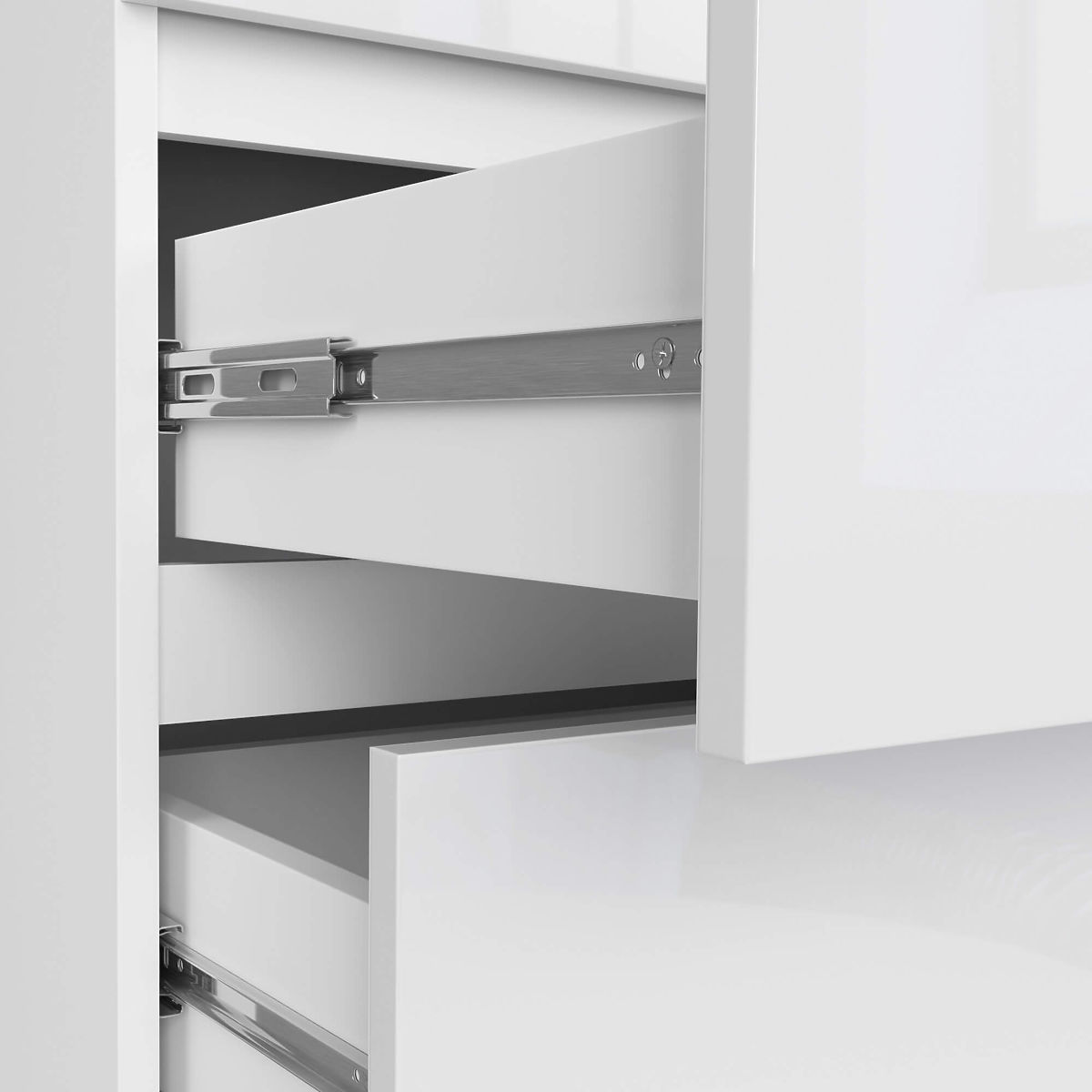 - Szuflady poruszają się na metalowych prowadnicach kulkowych