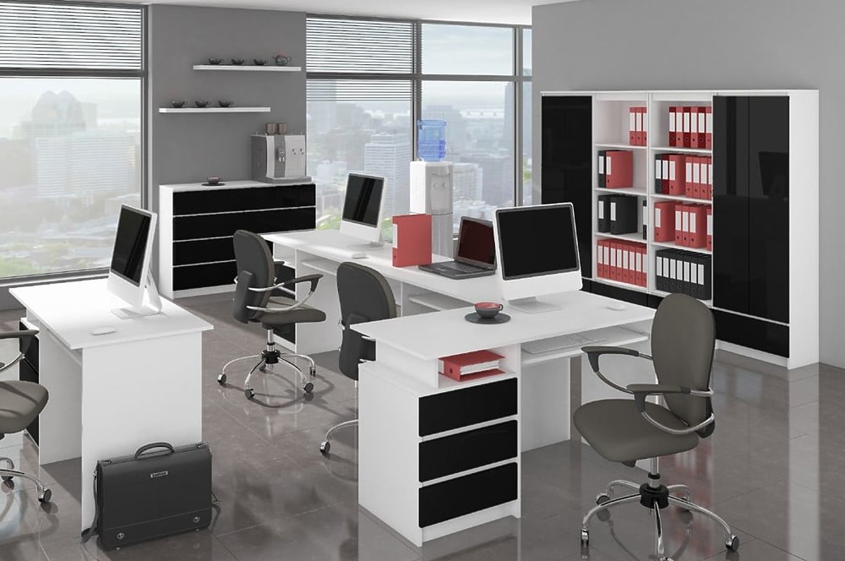Głębokość - 40cm- Korpus komody wykonany z płyty laminowanej biały mat 16mm odpornej na ścieranie - Fronty wykonane z płyty AKRYL 19mm w dekorze czarny wysoki połysk
