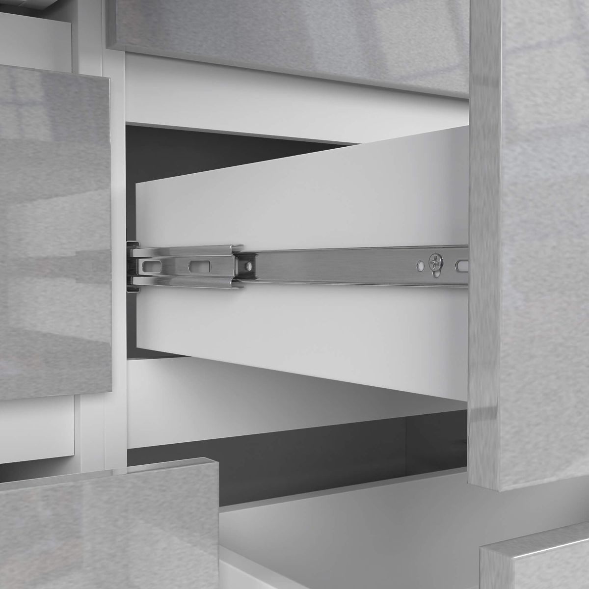 - Szuflady poruszają się na metalowych prowadnicach kulkowych